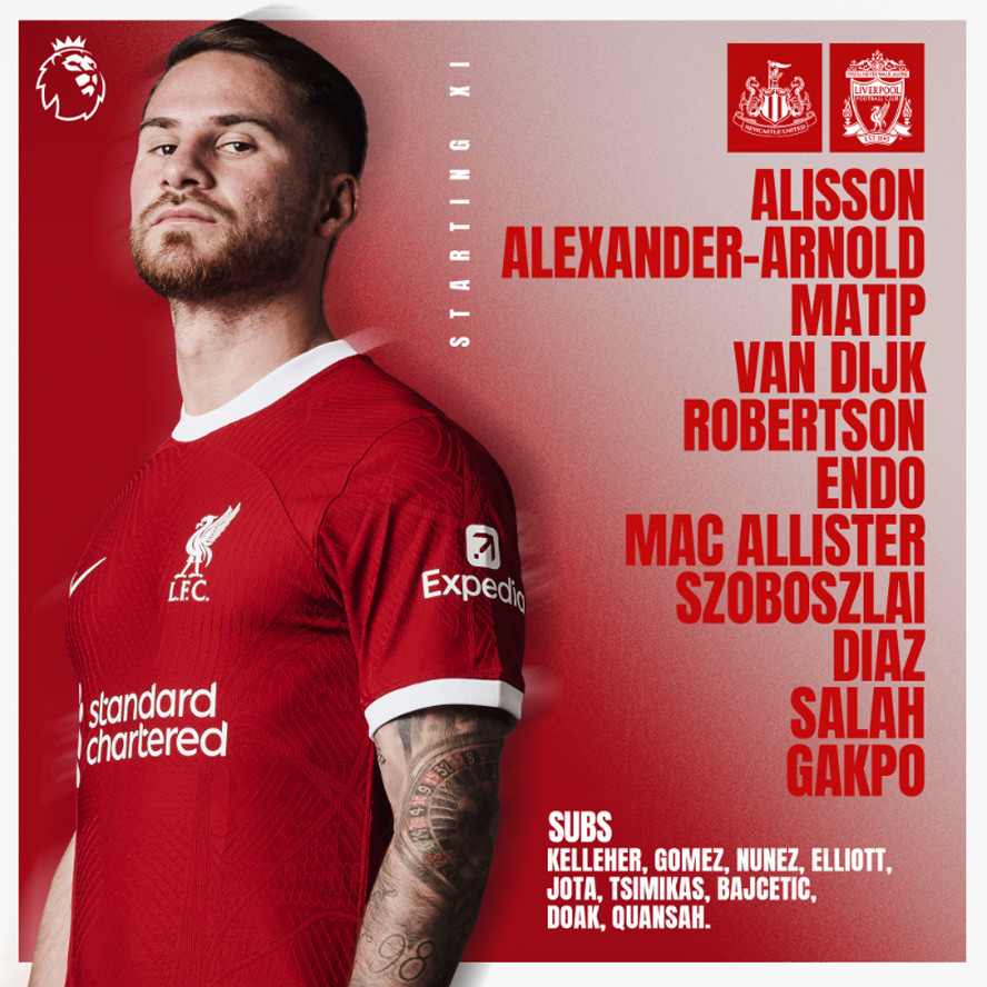 Liverpool (4-3-3): Alisson; Alexander-Arnold, Matip, Van Dijk, Robertson; Mac Allister, Endo, Szoboszlai; Salah, Gakpo, Diaz.