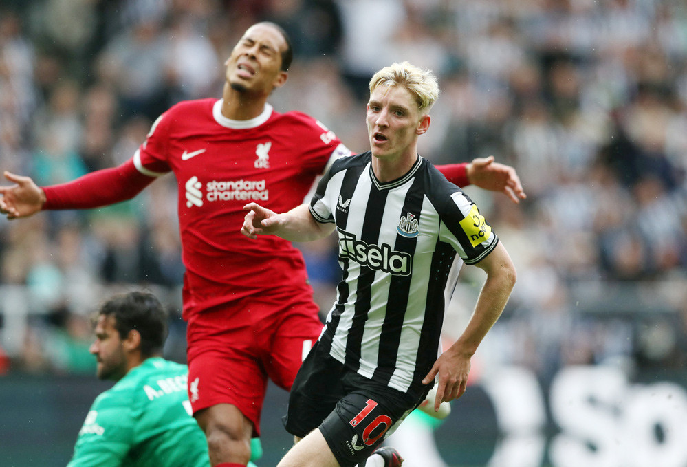Newcastle đang tấn công như triều dâng thác cuốn. Almiron nã đại bác sấm sét khiến Alisson phải đấm bóng chạm xà bật ra.