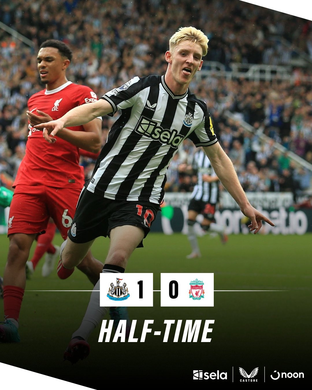 Bàn thắng (1-0, Anthony Gordon): Salah chuyền về đơn giản nhưng Alexander-Arnold đỡ hụt bóng. Gordon chớp thời cơ bứt tốc nhanh rồi đánh bại Alisson trong pha đối mặt.