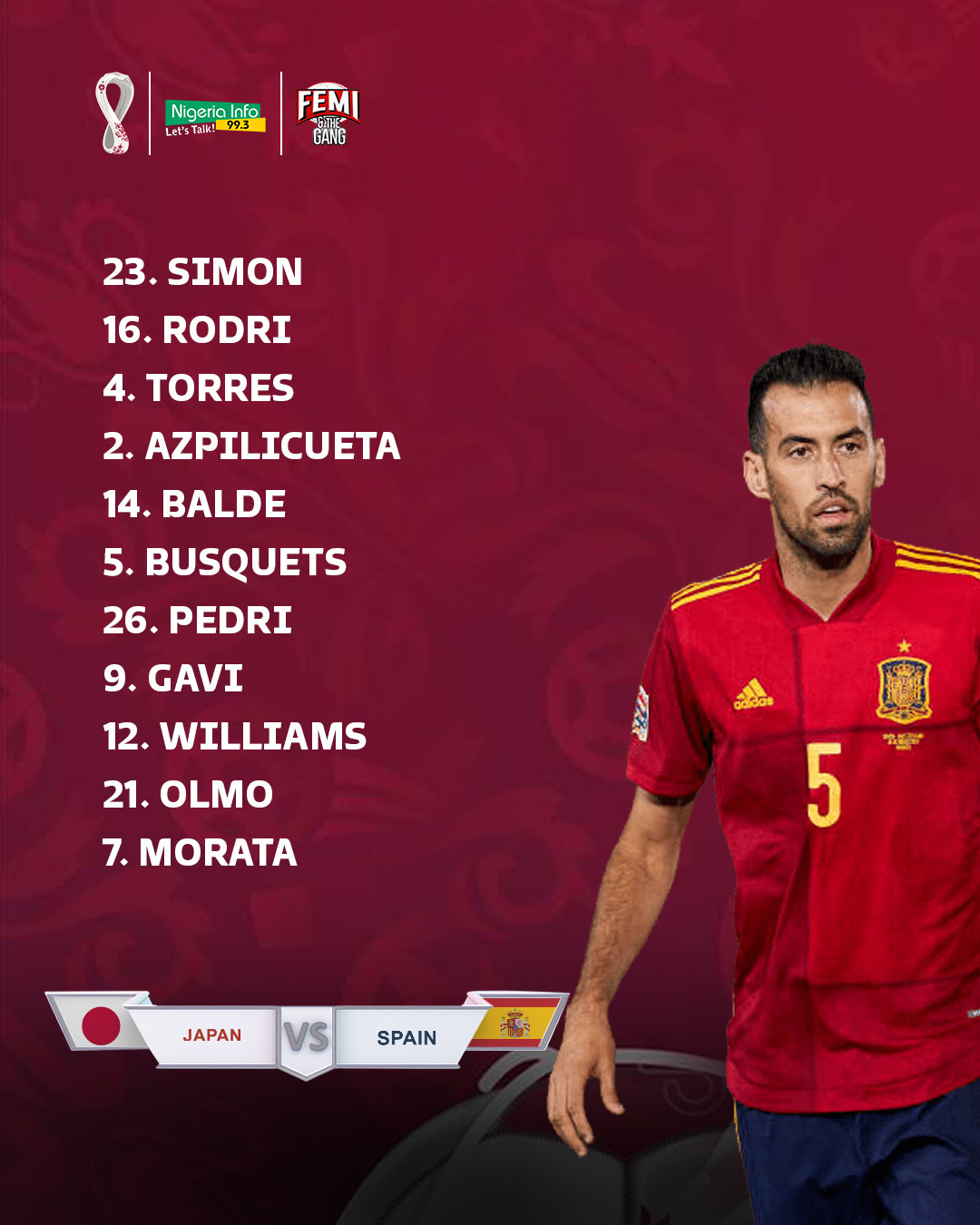 Tây Ban Nha (4-3-3): Unai Simon; Alejandro Balde, Pau Torres, Rodri, Cesar Azpilicueta; Pedri, Sergio Busquets, Gavi; Dani Olmo, Alvaro Morata, Nico Williams.