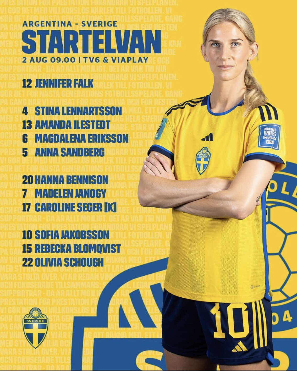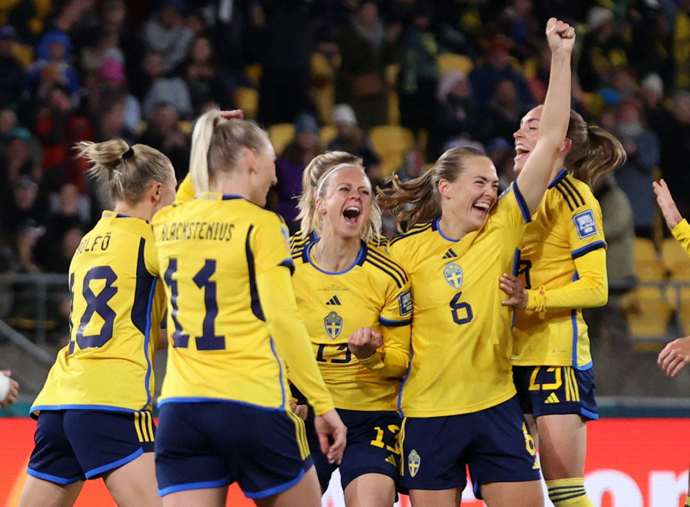 Nữ Thụy Điển: Falk; Lennartsson, Ilestedt, Eriksson, Sandberg; Bennison, Janogy, Seger, Jakobsson, Blomqvist, Schough.