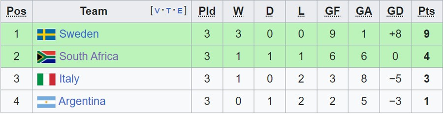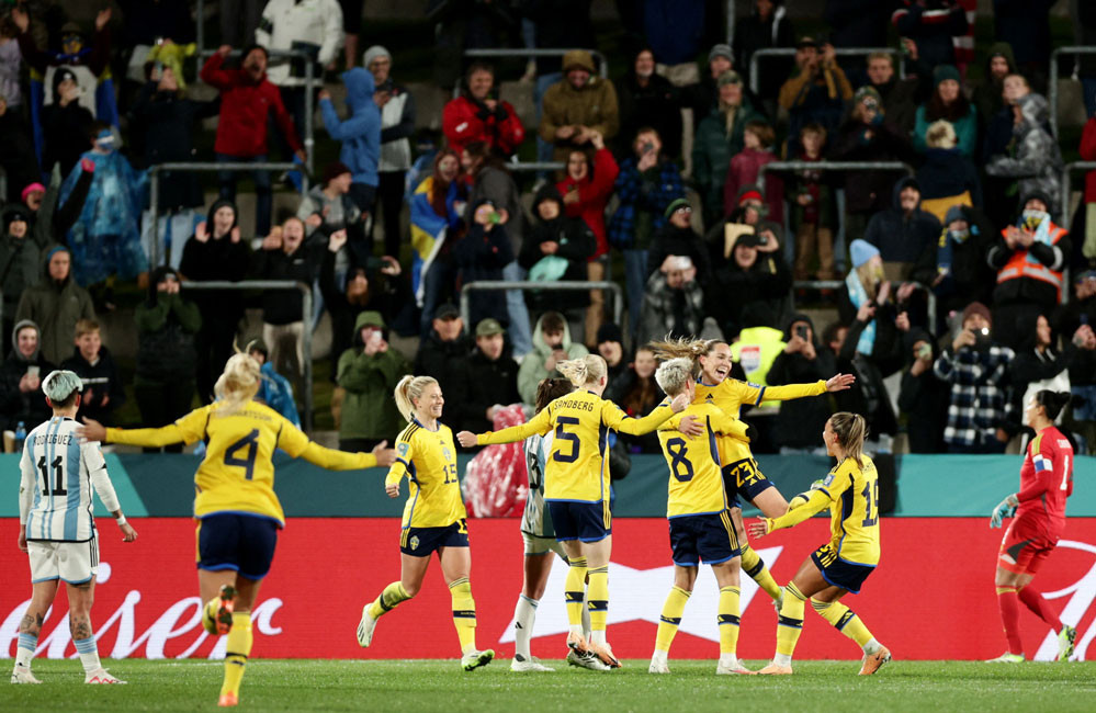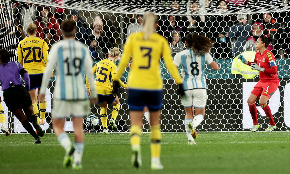 Argentina quá tập trung phòng ngự nên các pha phản công khá yếu ớt. Banini vừa nã pháo tầm xa đưa bóng đúng vào vị trí thủ môn nữ Thụy Điển.
