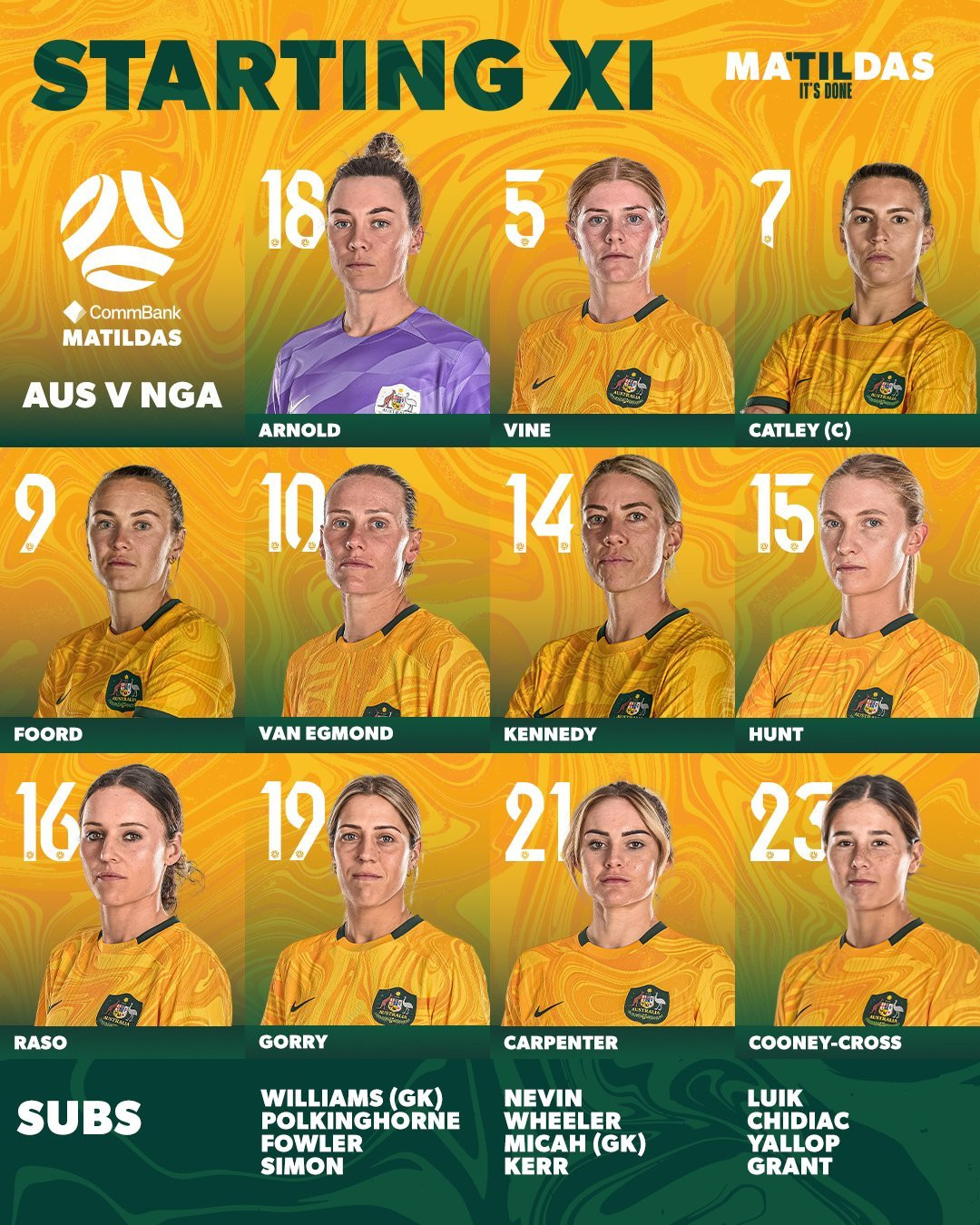 Nữ Australia: Arnold - Carpenter, Hunt, Kennedy, Catley - Raso, Goory, Cooney-Cross, Vine - Foord, Van Egmond.