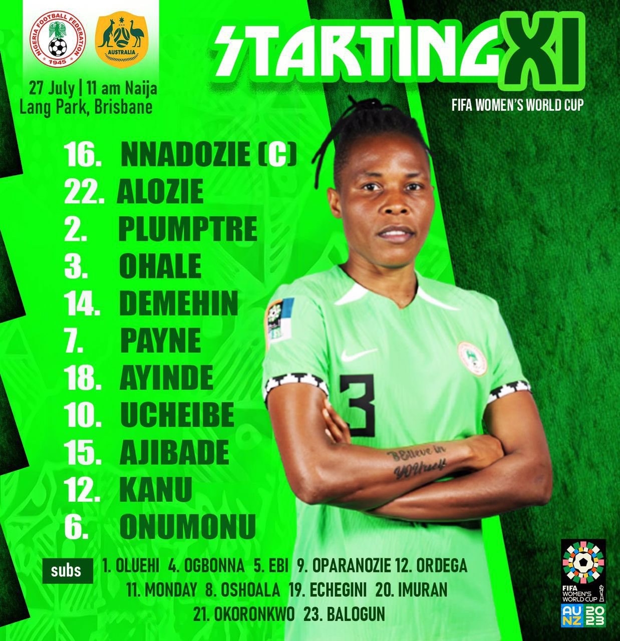 Nữ Nigeria: Nnadozie; Alozie, Demehin, Ohale, Plumptre; Ucheibe, Payne, Ayinde, Echegini, Ajibade; Onumonu.