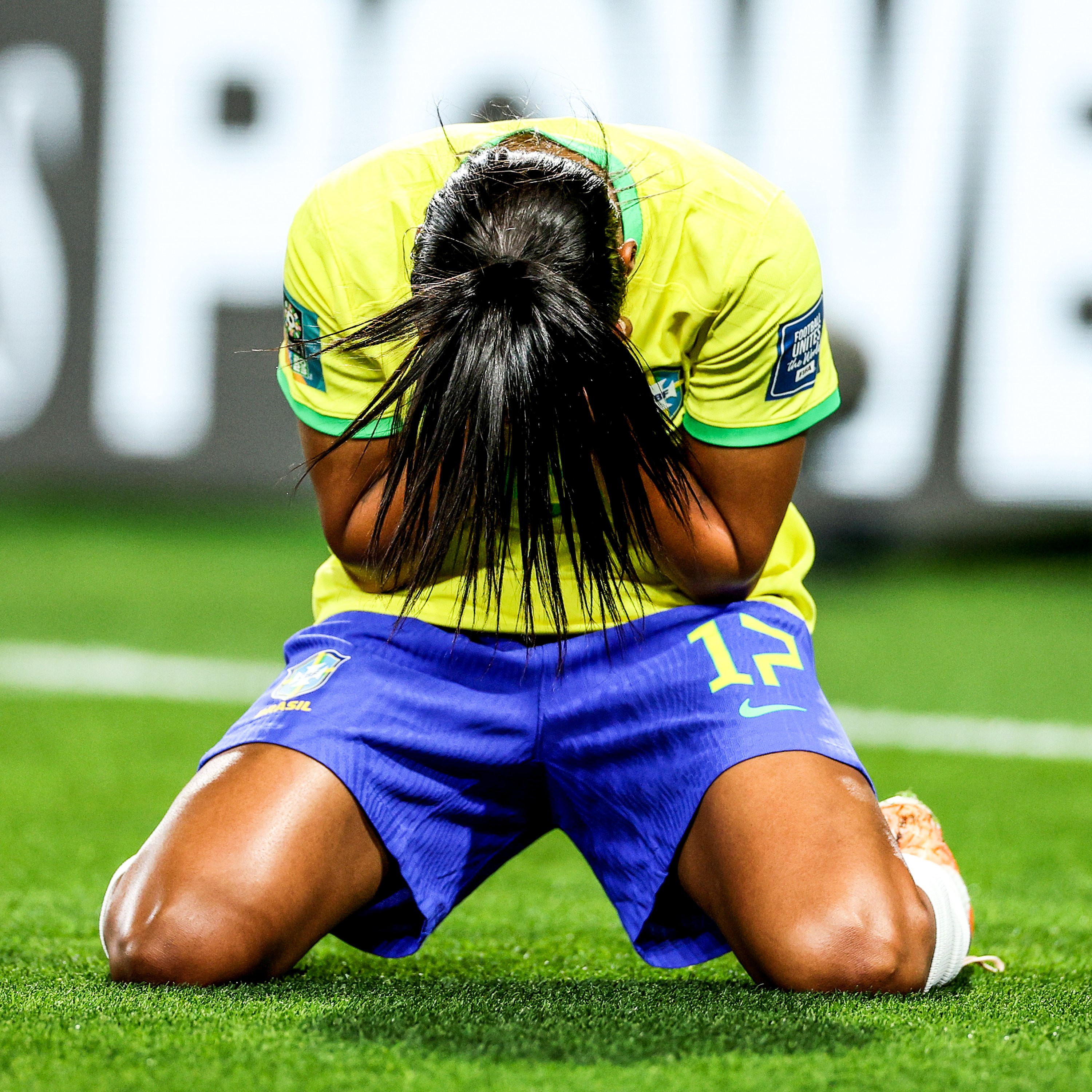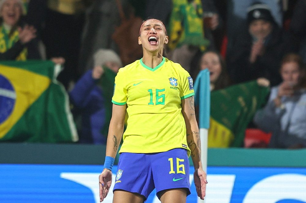 Nữ Brazil được hưởng quả đá phạt bên ngoài vòng cấm. Tiếc rằng cú đá của Debinha lại đi qua xà ngang.