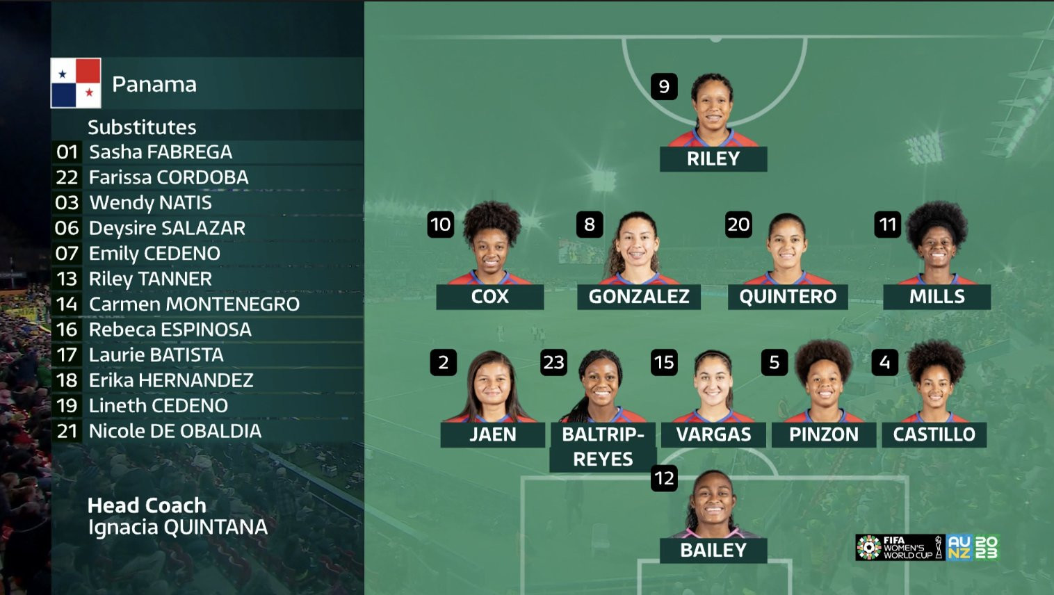 ĐT nữ Panama (5-4-1): Bailey; Castillo, Vargas, Pinzon, Baltrip-Reyes, Jaen; Mills, Quintero, Gonzalez, Cox; Riley.