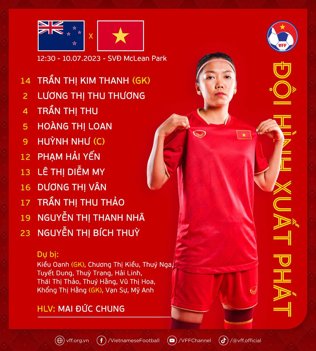 Đội hình xuất phát của tuyển nữ Việt Nam