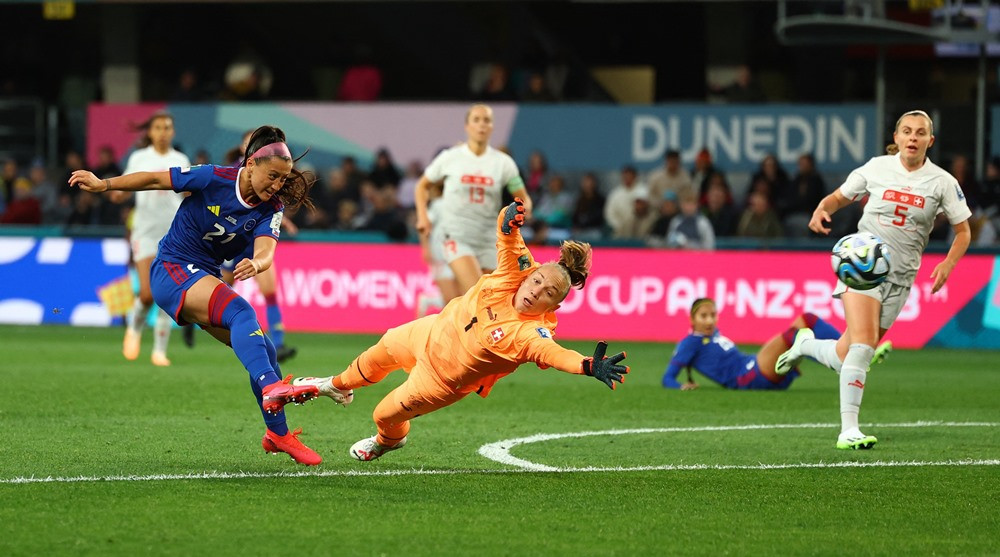 Cơ hội đáng kể đầu tiên cho nữ Thụy Sĩ, tuy nhiên cú kết thúc của Geraldine Reuteler là không đủ khó.