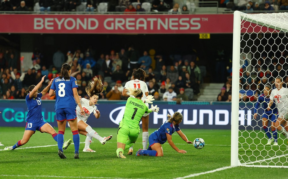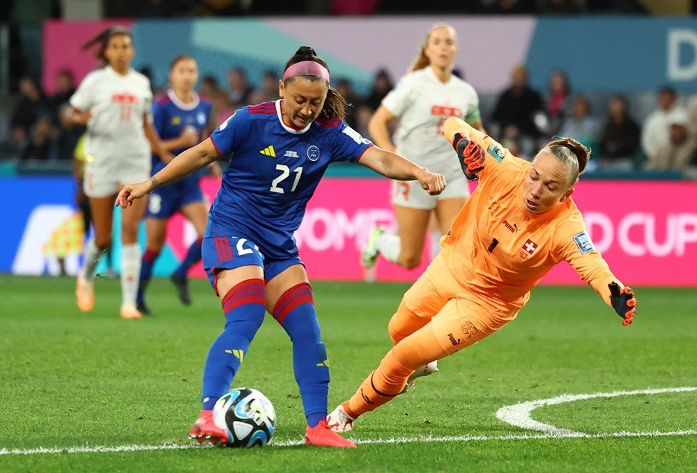 Katrina Guillou lẻn xuống đi bóng cắt ngang khung thành Thụy Sĩ, thủ môn Gaelle Thalmann bỏ khung thành lao ra nhưng không thể ngăn cản tiền đạo của nữ Philippines lập công. Tuy nhiên VAR xác định đã có lỗi việt vị của Katrina Guillou trước đó nên bàn thắng không được công nhận.