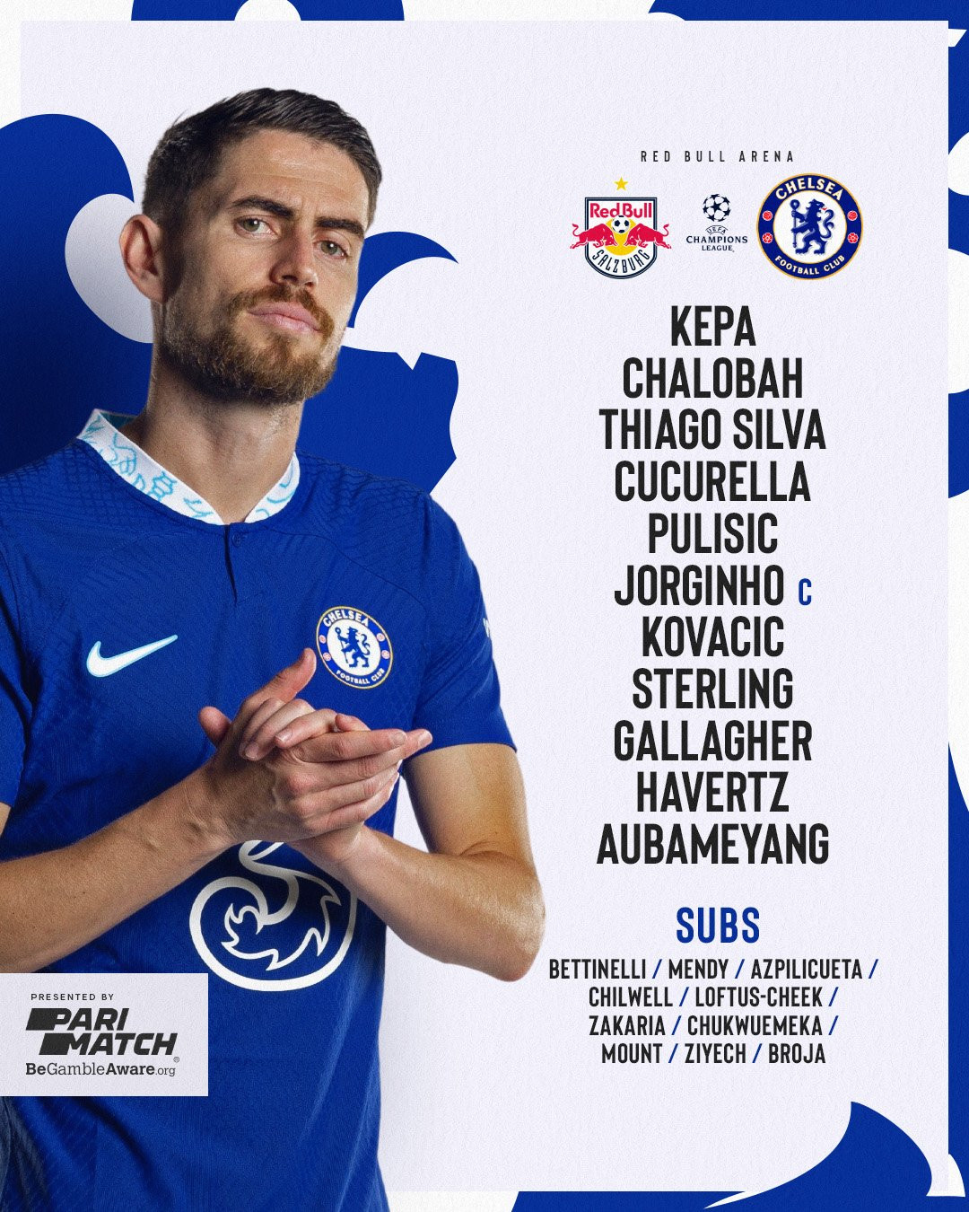 Chelsea: Kepa, Chalobah, Thiago Silva, Cucurella, Jorginho, Kovacic, Gallagher, Pulisic, Havertz, Sterling, Aubameyang.