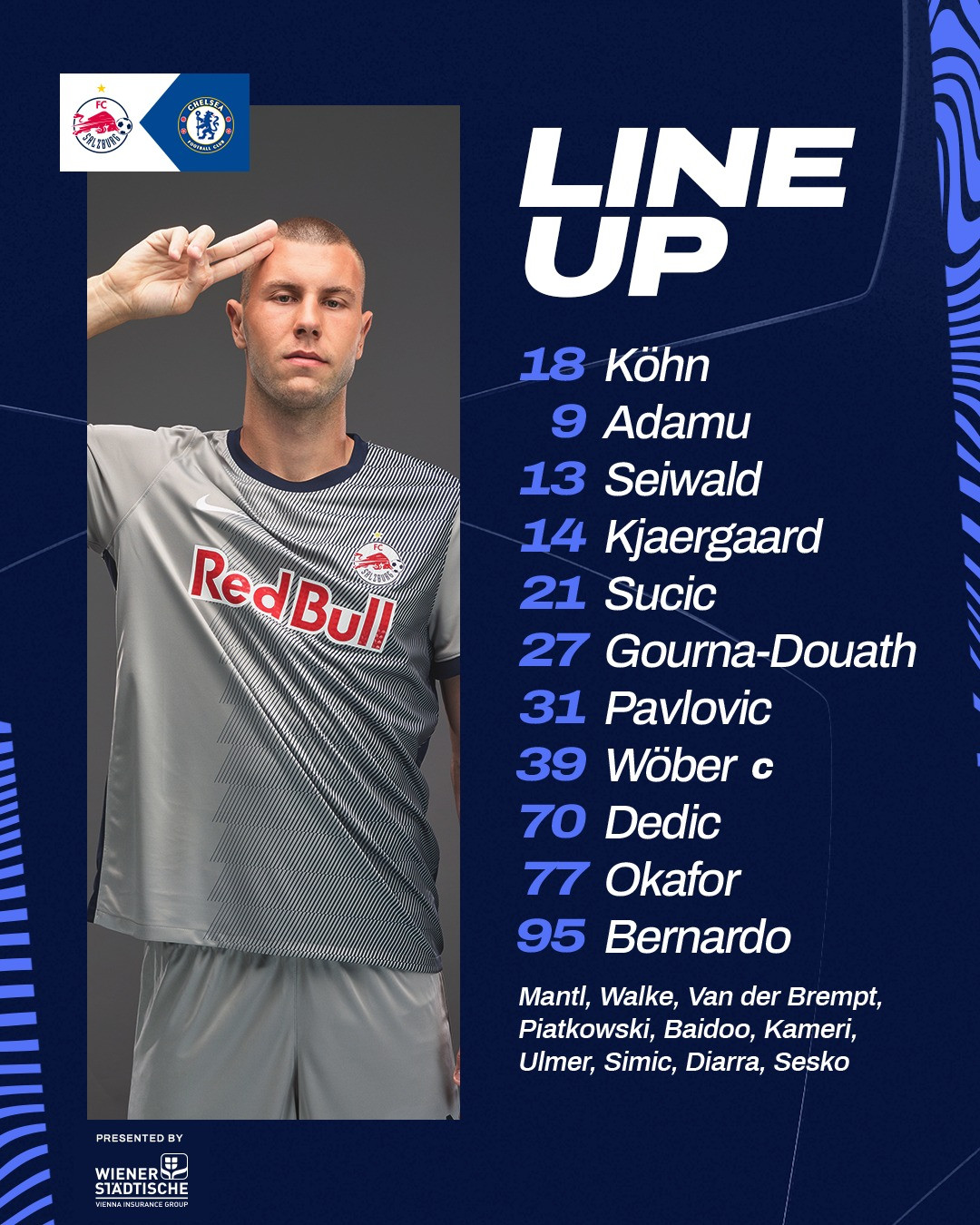 Salzburg: Kohn, Dedic, Pavlovic, Bernardo, Wober, Seiwald, Gourna-Douath, Kjaergaard, Sucic, Adamu, Okafor.