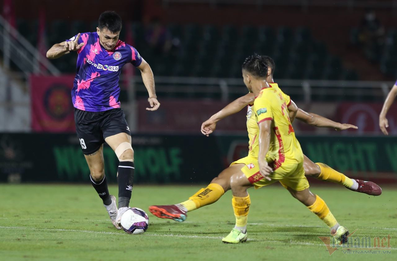 Các cầu thủ Sài Gòn vẫn đang miệt mài tấn công để tìm kiếm bàn quân bình tỉ số.