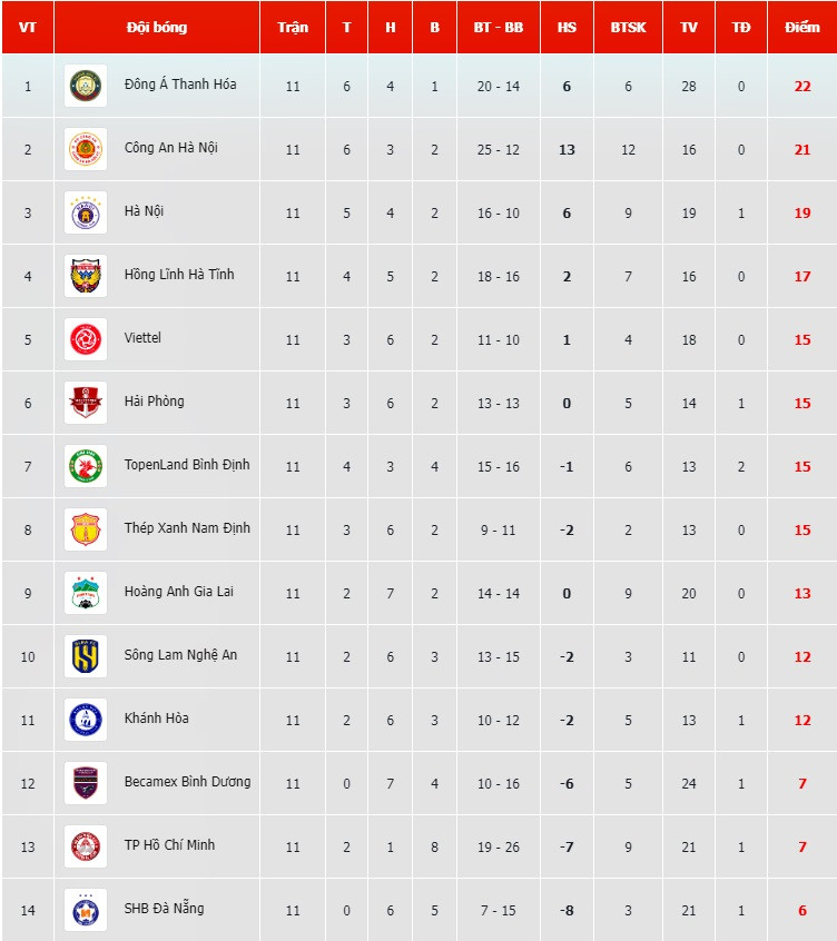 Bảng xếp hạng V-League 2023 vòng 11 mới nhất: CAHN chỉ còn kém Thanh Hóa 1 điểm