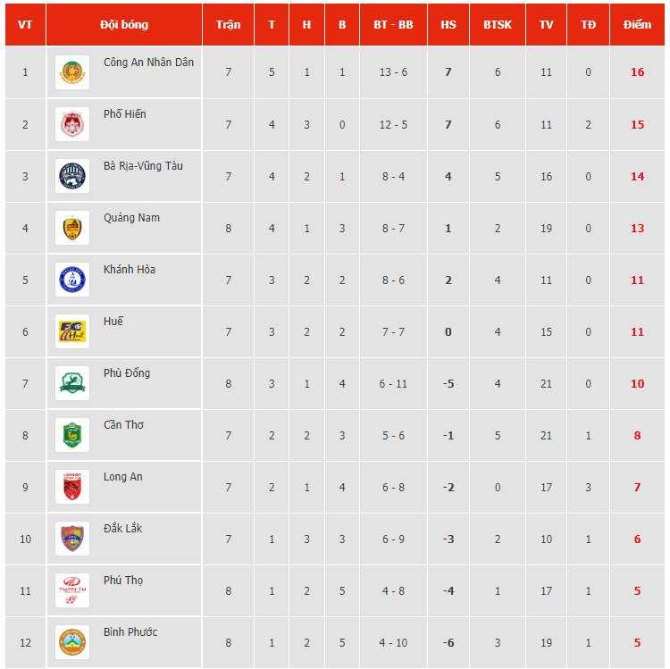 Bảng xếp hạng V-League 2022