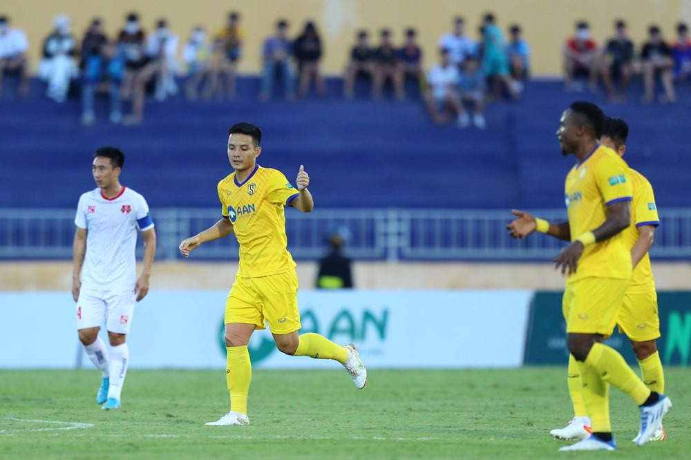 Bàn mở tỷ số từ khá sớm giúp đội chủ sân Vinh thi đấu thoải mái và tự tin hơn. Phan Văn Đức và các đồng đội đang kiểm soát tốt thế trận.