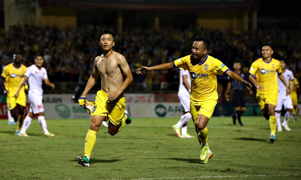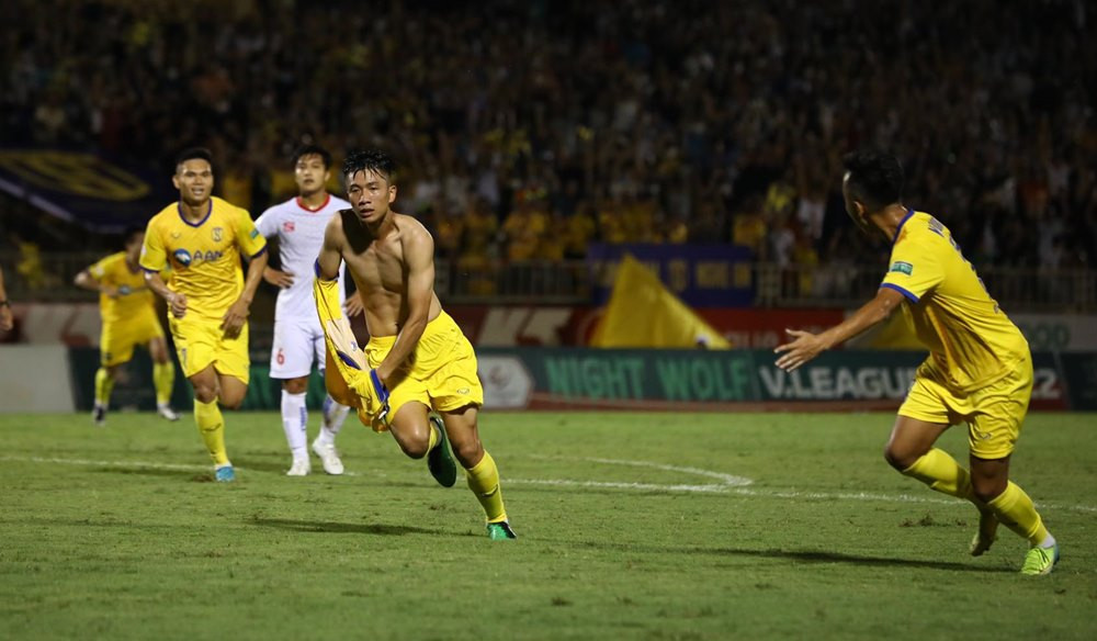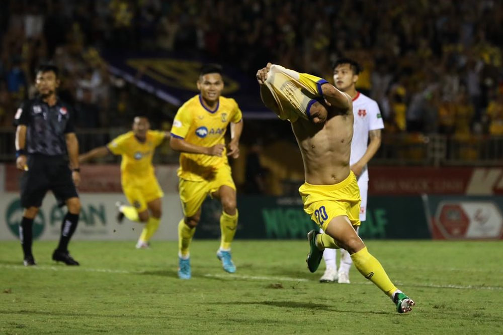 Đón đường chuyền của đồng đội, Phan Văn Đức ngả người bắt vô-lê tuyệt đẹp trong vòng cấm nâng tỷ số lên 2-0 cho SLNA. Quá phấn khích vì siêu phẩm, chân sút mang áo số 20 đã cởi phăng áo ăn mừng và phải nhận thẻ vàng.