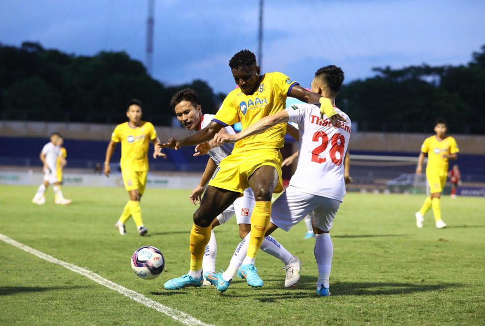 Trọng tài chính Trương Hồng Vũ thổi còi cho trận đấu giữa SLNA vs Hải Phòng được bắt đầu. Cùng thời điểm này, trận đấu giữa Topenland Bình Định vs SHB Đà Nẵng trên sân Quy Nhơn cũng được khởi tranh.