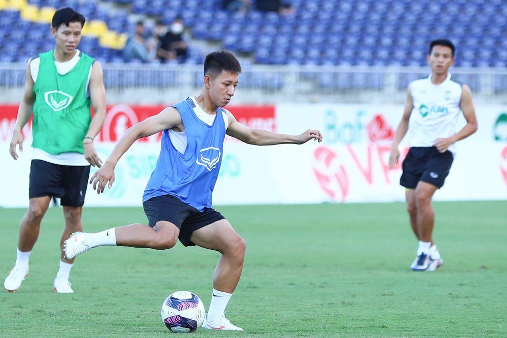 Dẫn trước với cách biệt 3 bàn, HLV Huy Hoàng rút dần các trụ cột trong đó có Phan Văn Đức và cả Phạm Xuân Mạnh - những cầu thủ ghi bàn đẹp mắt trận này ra nghỉ dưỡng sức.