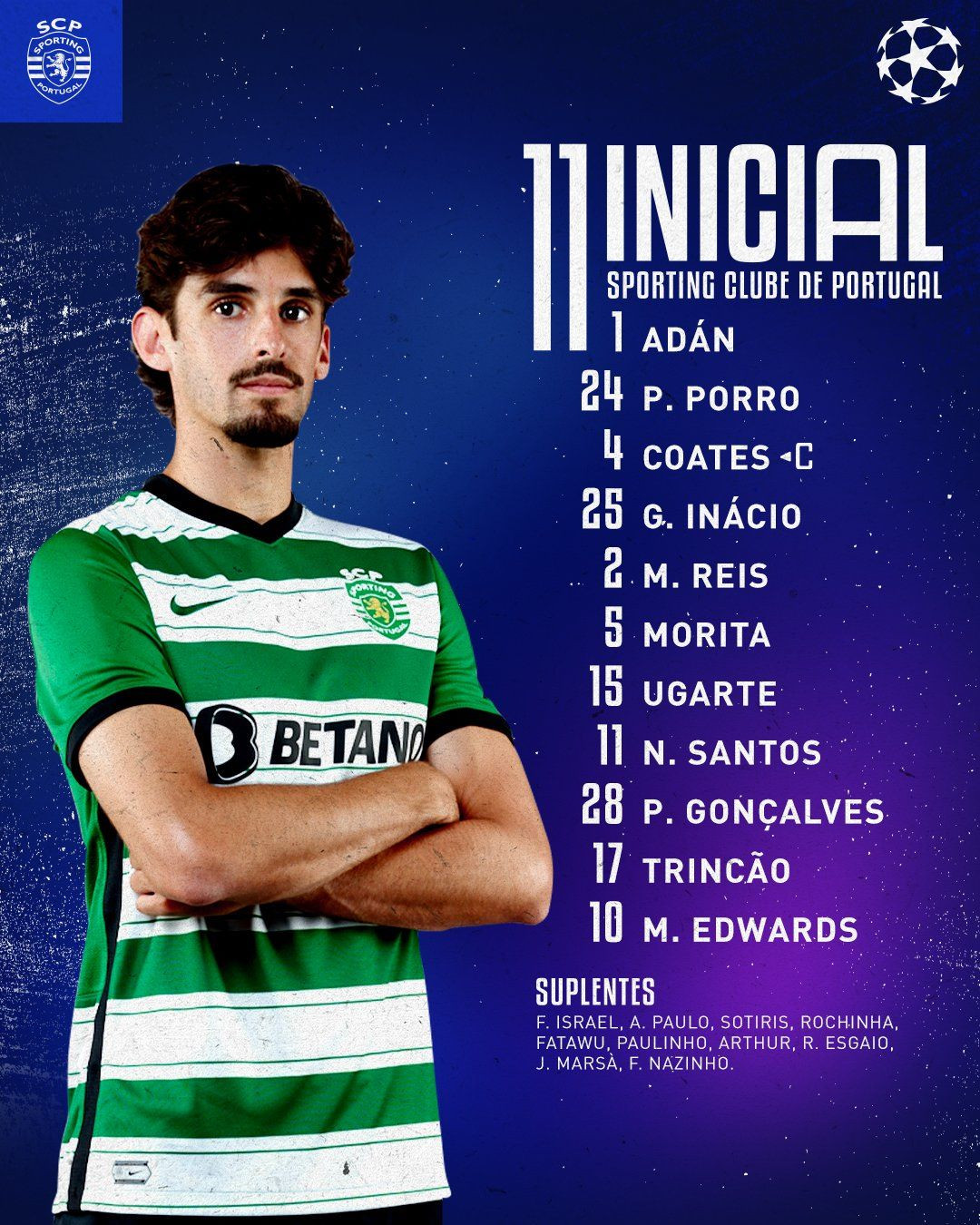 Sporting Lisbon: Adan, Goncalo Inacio, Coates, Matheus Reis, Pedro Porro, Morita, Ugarte, Nuno Santos, Francisco Trincao, Pedro Goncalves, Edwards