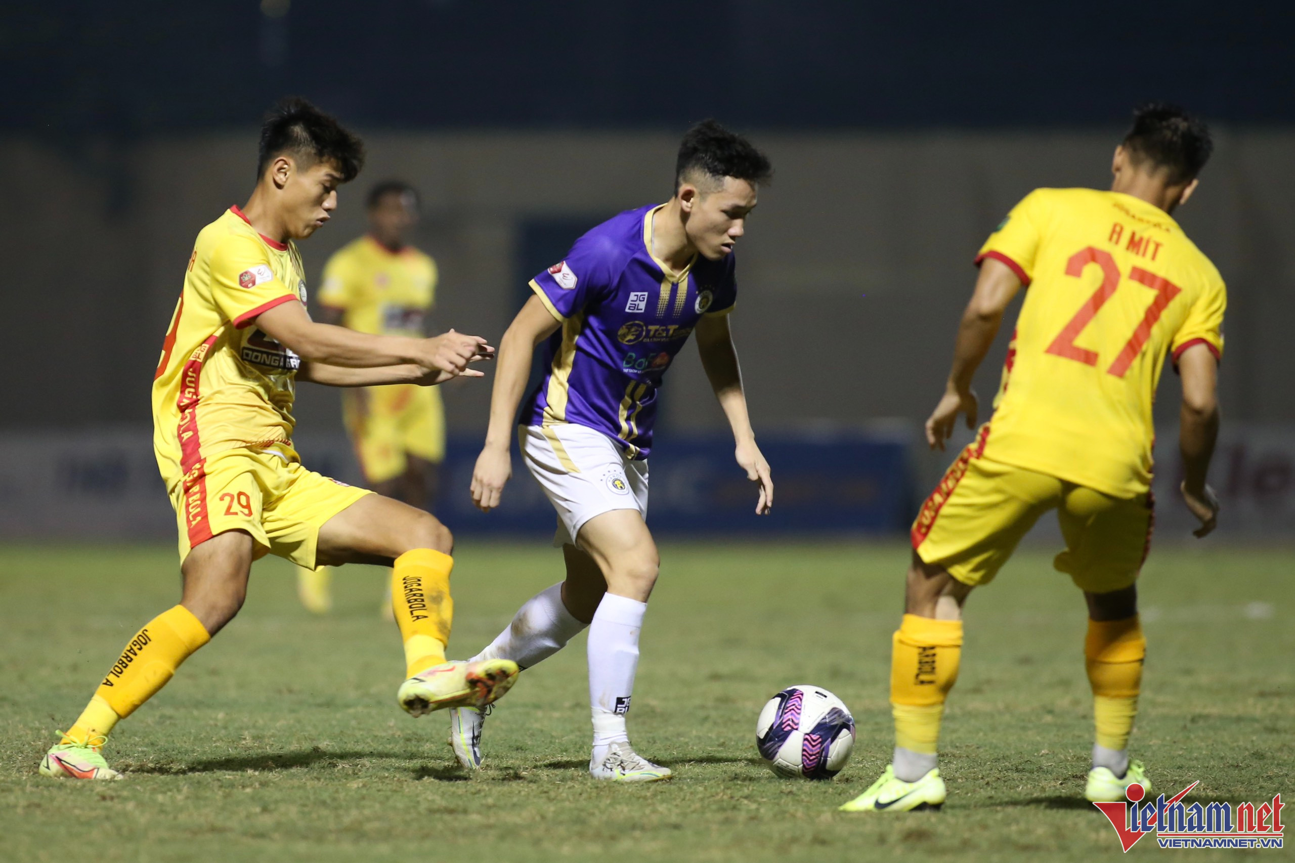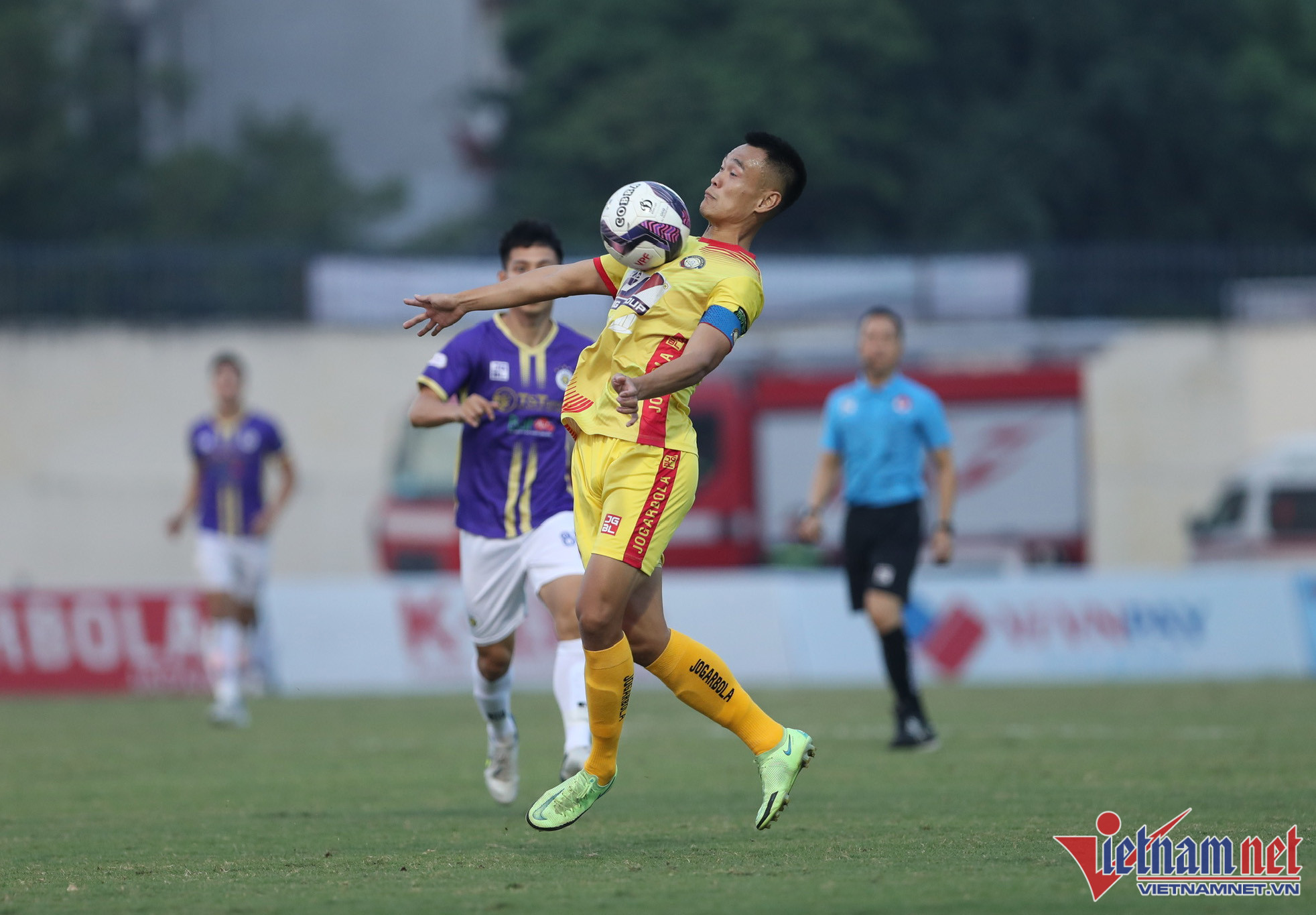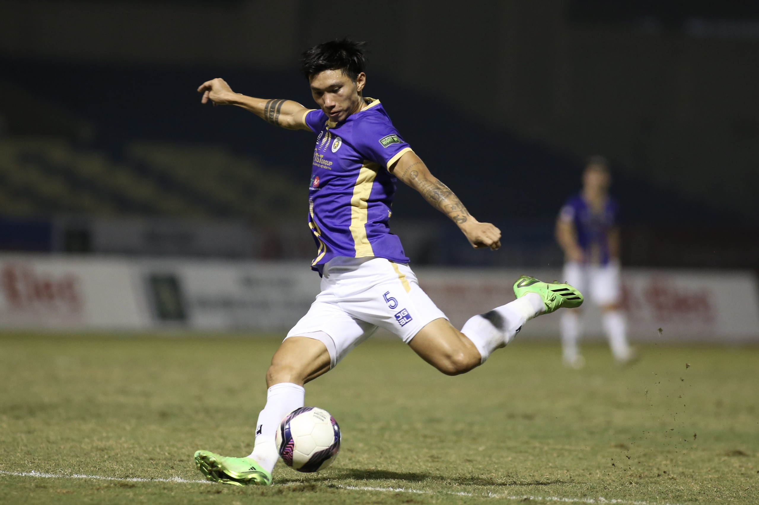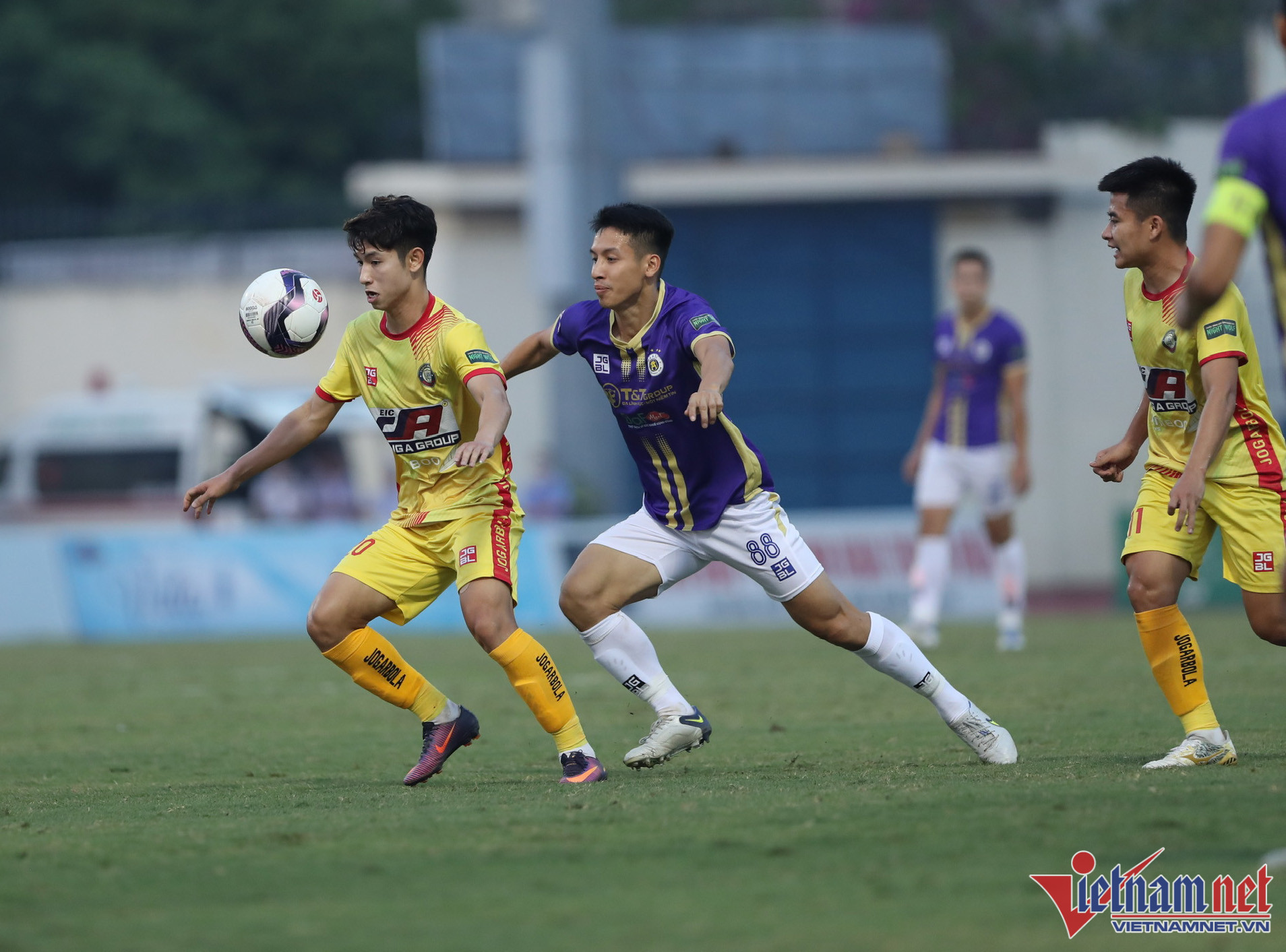 Văn Hậu dâng cao thực hiện cú sút chéo góc. Tuy vậy, bóng đi chưa đủ chính xác và chưa có thêm bàn thắng cho Hà Nội.