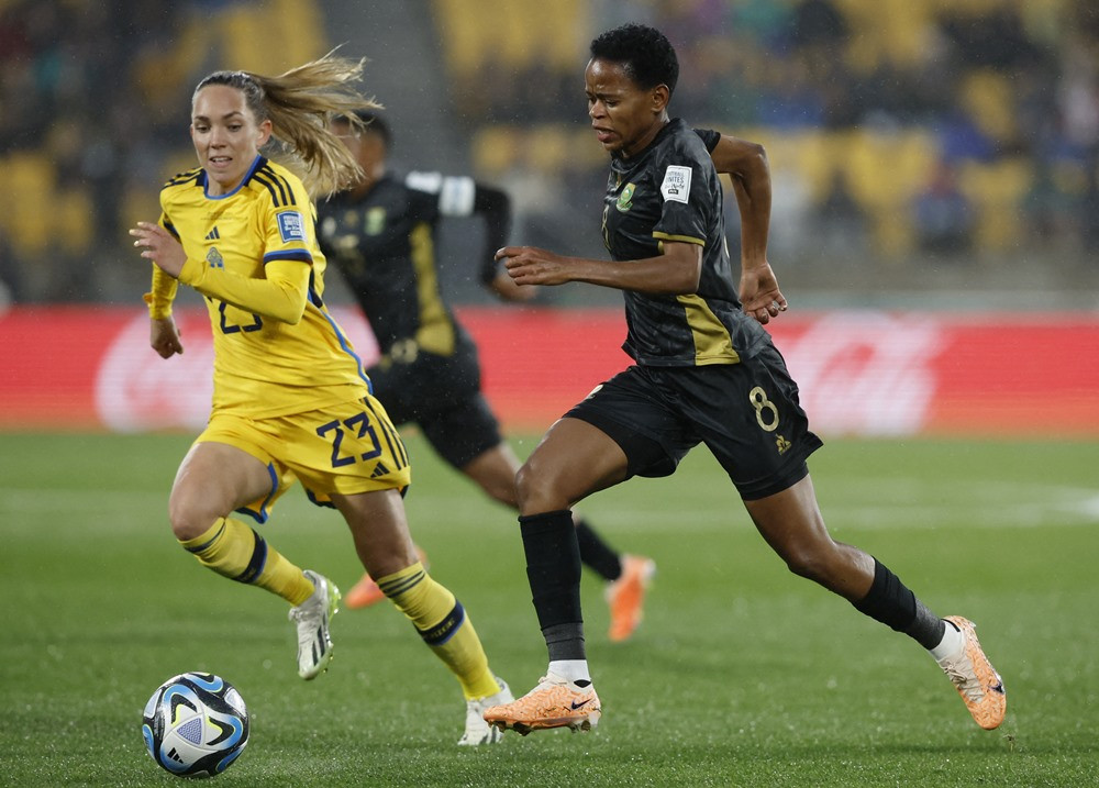 Xuất phát từ đường chuyền dài vượt tuyến bên cánh trái của Nam Phi, Linda Motlhalo dứt điểm khiến thủ môn Zecira Musovic cản phá không tốt. Hildah Magaia dũng mãnh lao vào chạm bóng làm tung lưới nữ Thụy Điển.