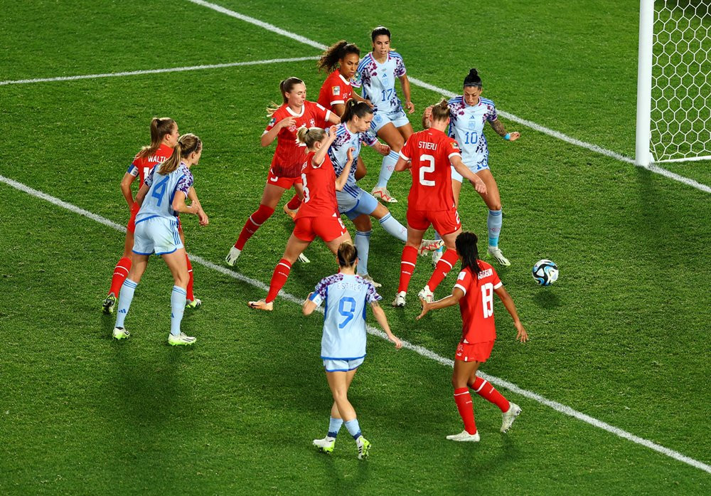 Sau khi có bàn mở tỉ số sớm, nữ Tây Ban Nha tiếp tục duy trì thế trận lấn lướt trước các cô gái Thụy Sỹ. Đội trưởng Esther Gonzalez vừa có pha đánh đầu đưa bóng leo khung thành đối phương.