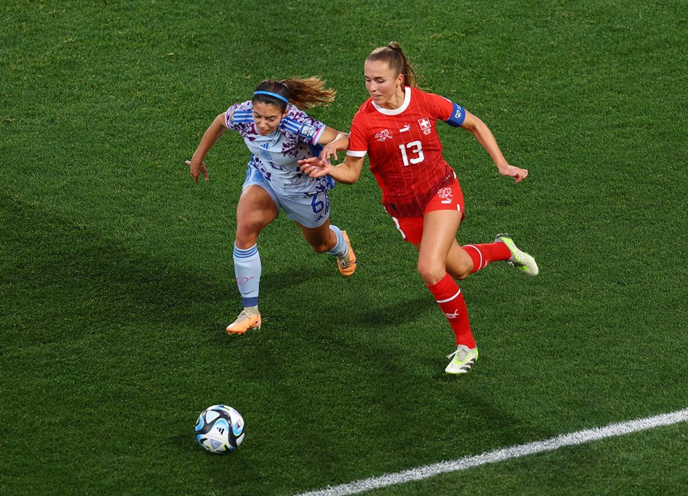 Nữ Thụy Sỹ hiếm khi tổ chức lên bóng, số ít tạo ra nhanh chóng bị hàng thủ nữ Tây Ban Nha bẻ gãy.