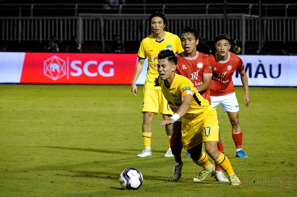HAGL tổ chức tấn công sắc bén, Hồng Duy đẩy bóng cho Văn Toàn di chuyển bên cánh phải. Tuy nhiên tiền đạo quê Hải Dương lại bị trượt chân ngã trong vòng cấm TP.HCM.