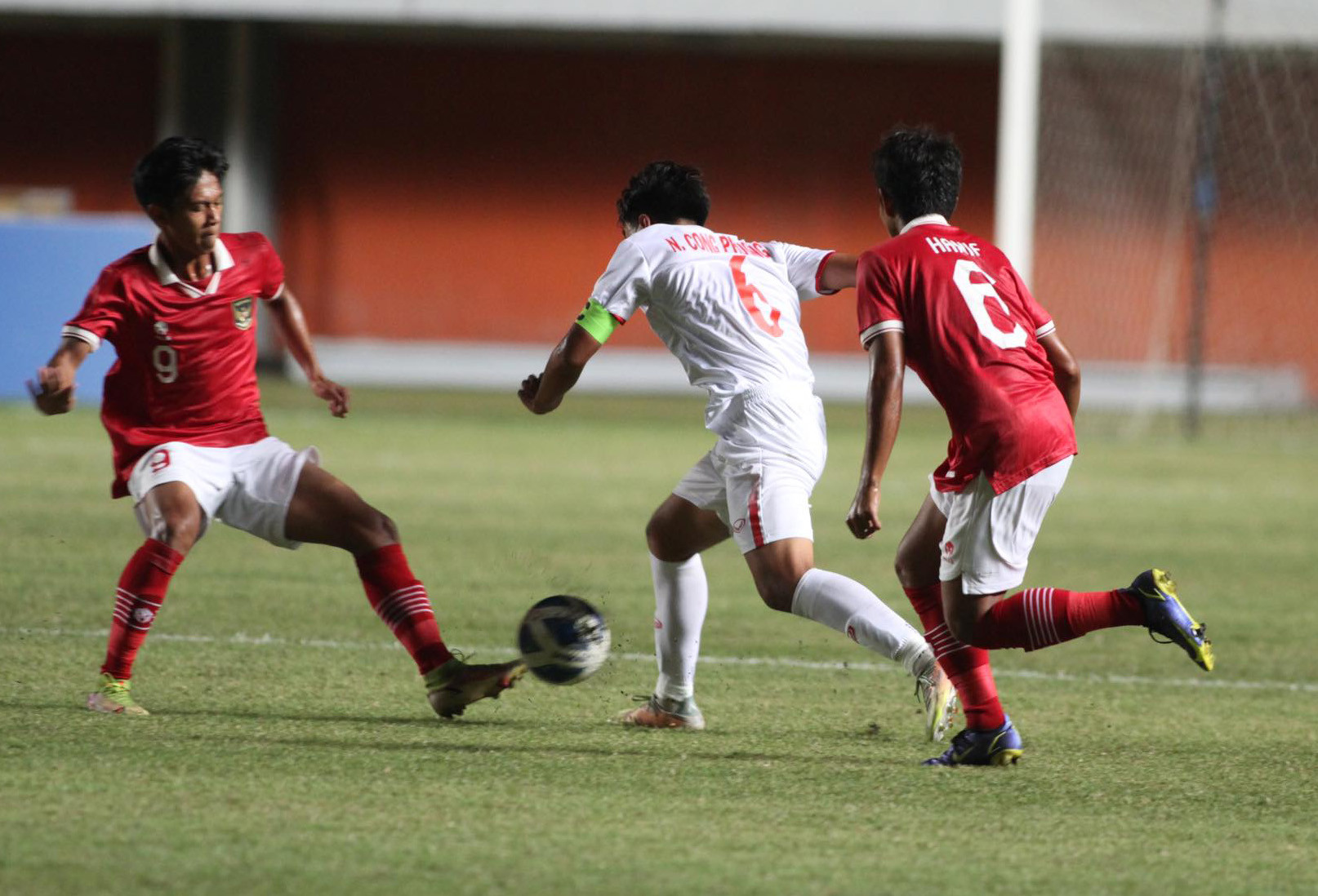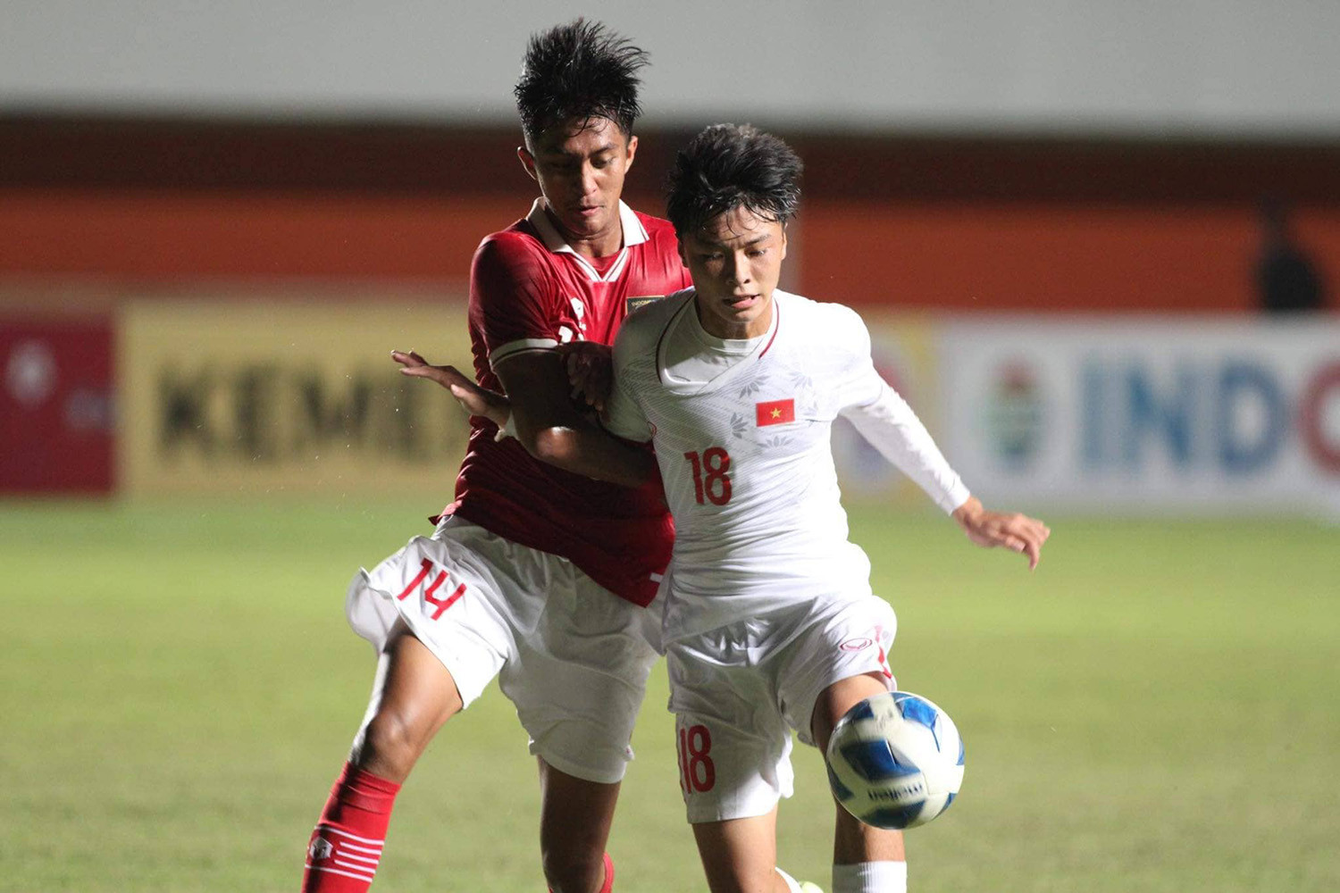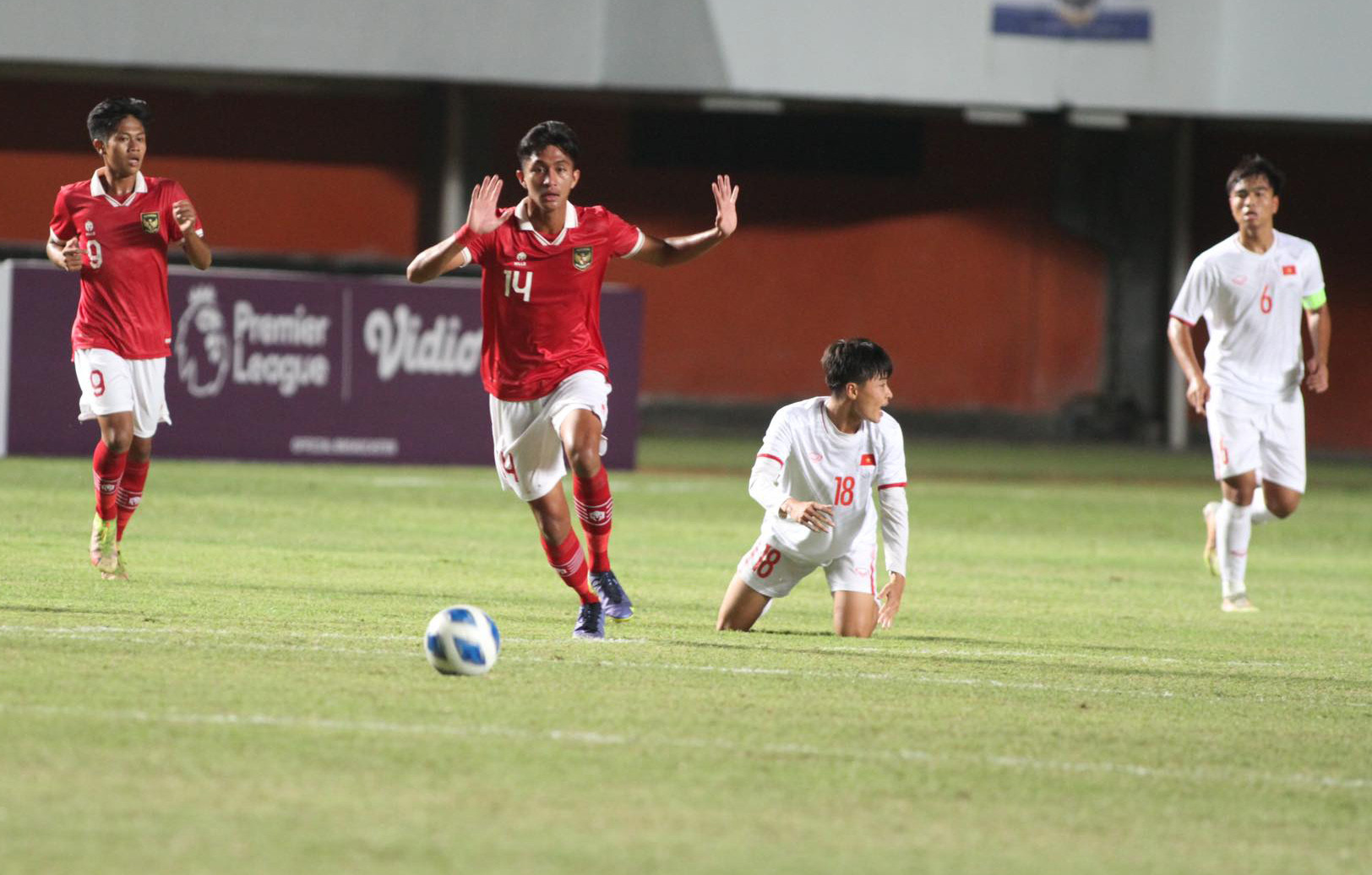Lối chơi giàu thể lực của U16 Indonesia đang gây ra khá nhiều khó khăn cho các cầu thủ U16 Việt Nam.