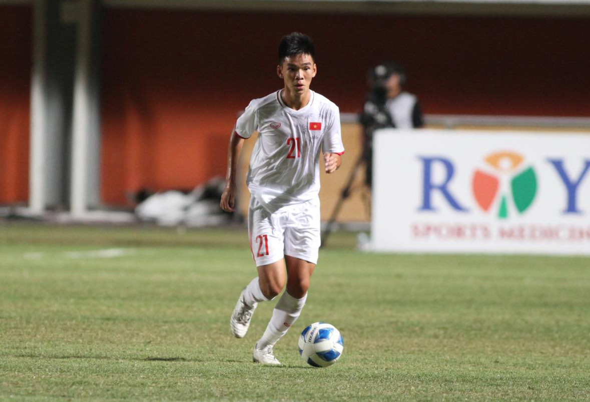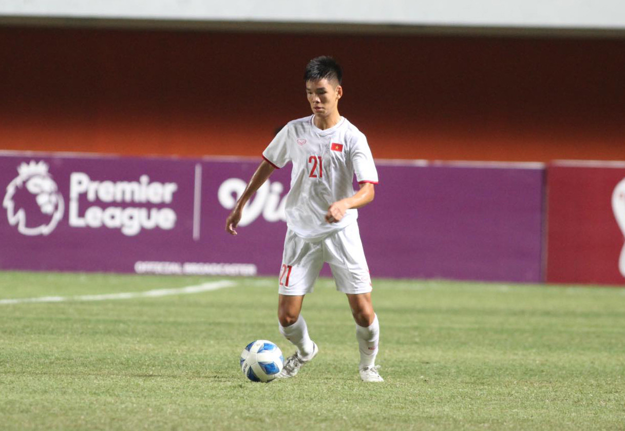 Hoàng Sơn bị đau sau pha phạm lỗi của cầu thủ U16 Indonesia, anh rời sân để nhường chỗ cho Công Hậu.