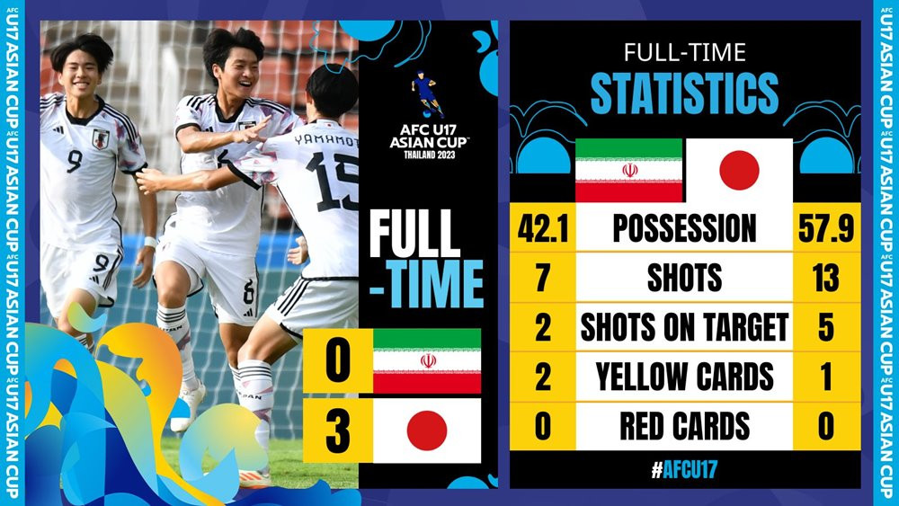 Trận đấu kết thúc với chiến thắng khá dễ dàng với tỉ số 3-0 cho U17 Nhật Bản trước U17 Iran, qua đó góp mặt ở chung kết U17 châu Á 2023. Đối thủ của "Samurai xanh" trẻ là U17 Hàn Quốc, sau khi đội bóng xứ Kim chi vượt qua U17 Uzbekistan 1-0. Trận chung kết trong mơ diễn ra vào lúc 19h ngày 2/7 sắp tới.