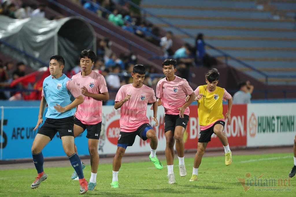 Các cầu thủ U17 Thái Lan khởi động trước trận đấu