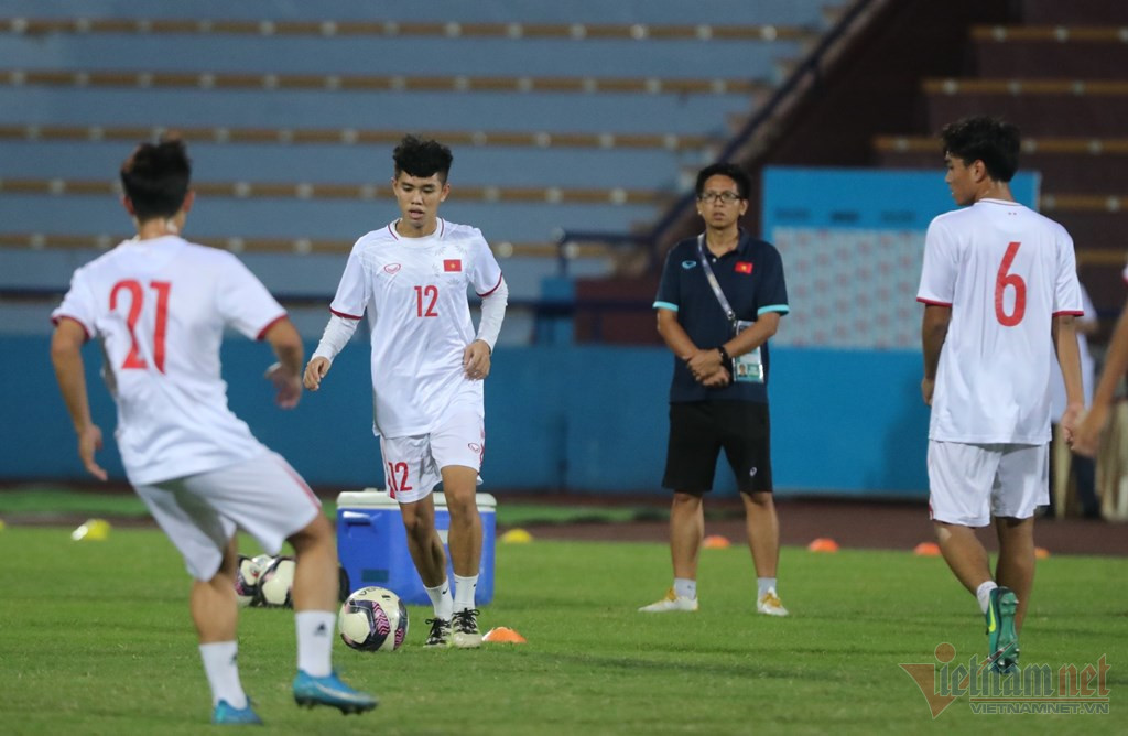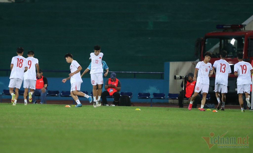 Các cầu thủ U17 Việt Nam khởi động trước trận đấu
