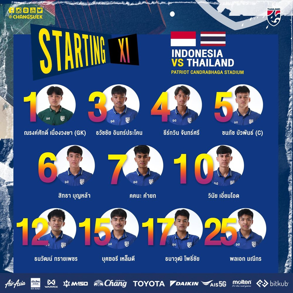 U19 Thái Lan: Nuangwongsa, Nathan James, Chonnapat Buaphan, Bukkoree Lemdee, Chansri, Patiparnchai Phothep, Sittha Boonlha, Thanawat Saipetch, Pornsawan Sankla, Nattakit Butsing, Winai Aimoat