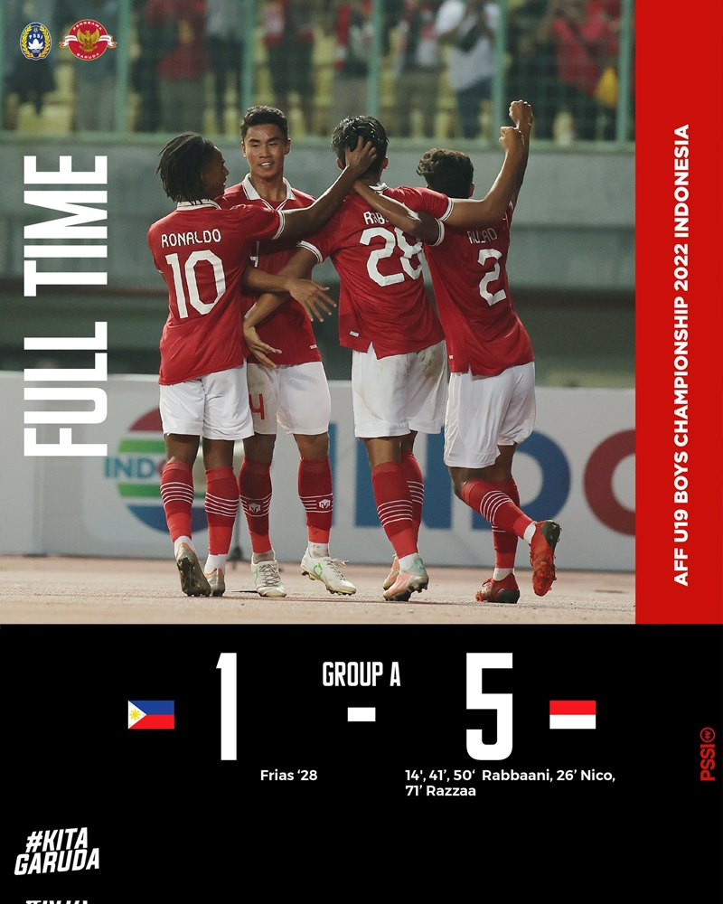 Trận đấu kết thúc với chiến thắng cách biệt 5-1 dành cho U19 Indonesia trước U19 Philippines. Kết quả này khiến bảng A giải U19 Đông Nam Á 2022 trở nên khó lường hơn.