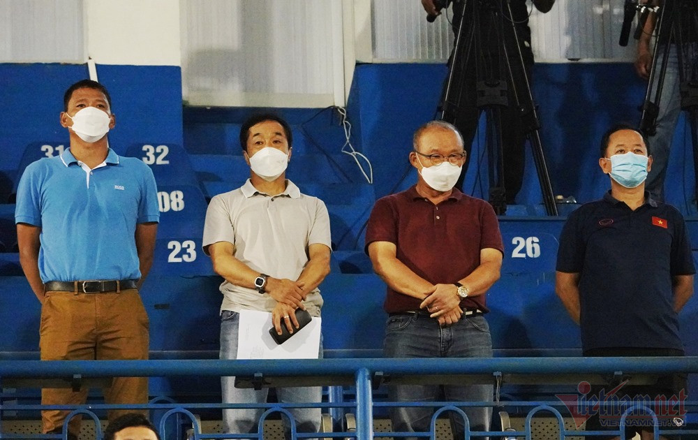HLV trưởng ĐTQG Việt Nam Park Hang Seo và các cộng sự dự khán trên sân Bình Dương chắc chắn giúp các cầu thủ U19 Việt Nam thi đấu máu lửa hơn. HLV U23 Việt Nam ông Gong Oh Kyun cũng có mặt trên khán đài.