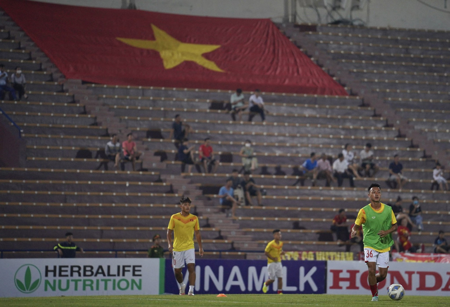 Các cầu thủ U20 Việt Nam làm nóng.