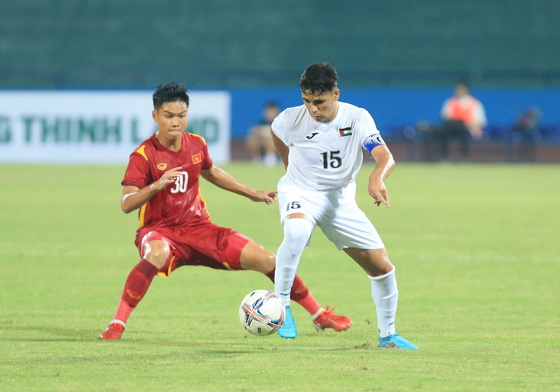 U20 Việt Nam thi đấu khá chủ động. Các cầu thủ của HLV Đinh Thế Nam cầm bóng rồi triển khai nhiều hướng để kéo giãn đội hình U20 Palestine.