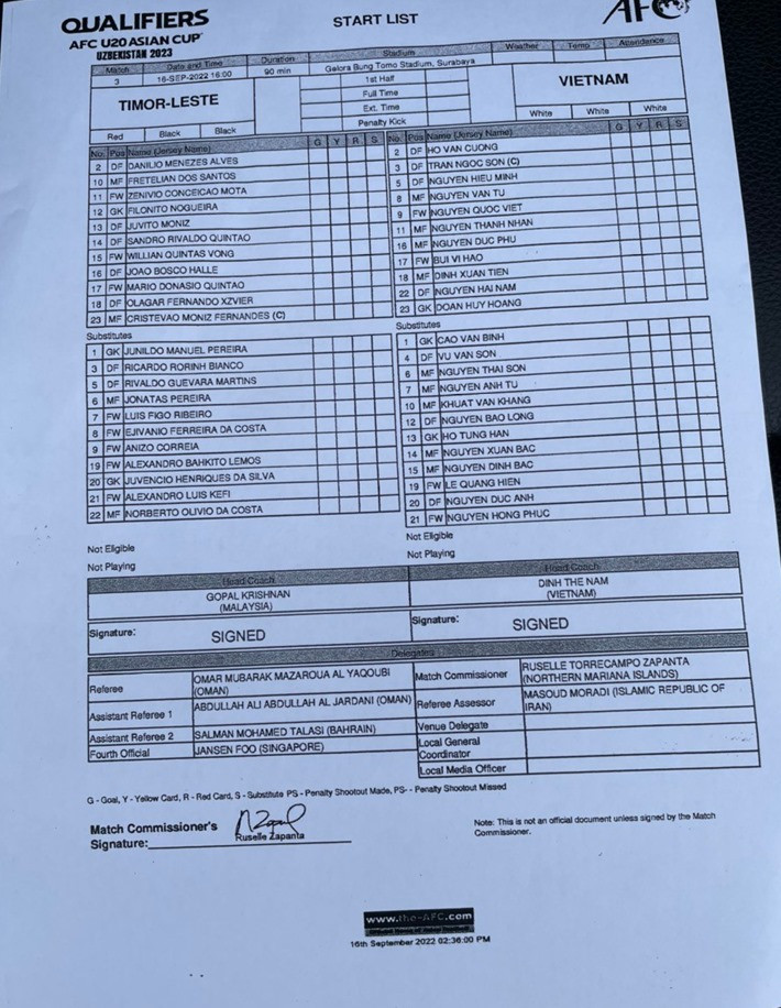 Giống như ở trận ra quân với U20 Indonesia, U20 Timor Leste lập tức thay người sau khi dính hai bàn thua liên tiếp chỉ trong ít phút.