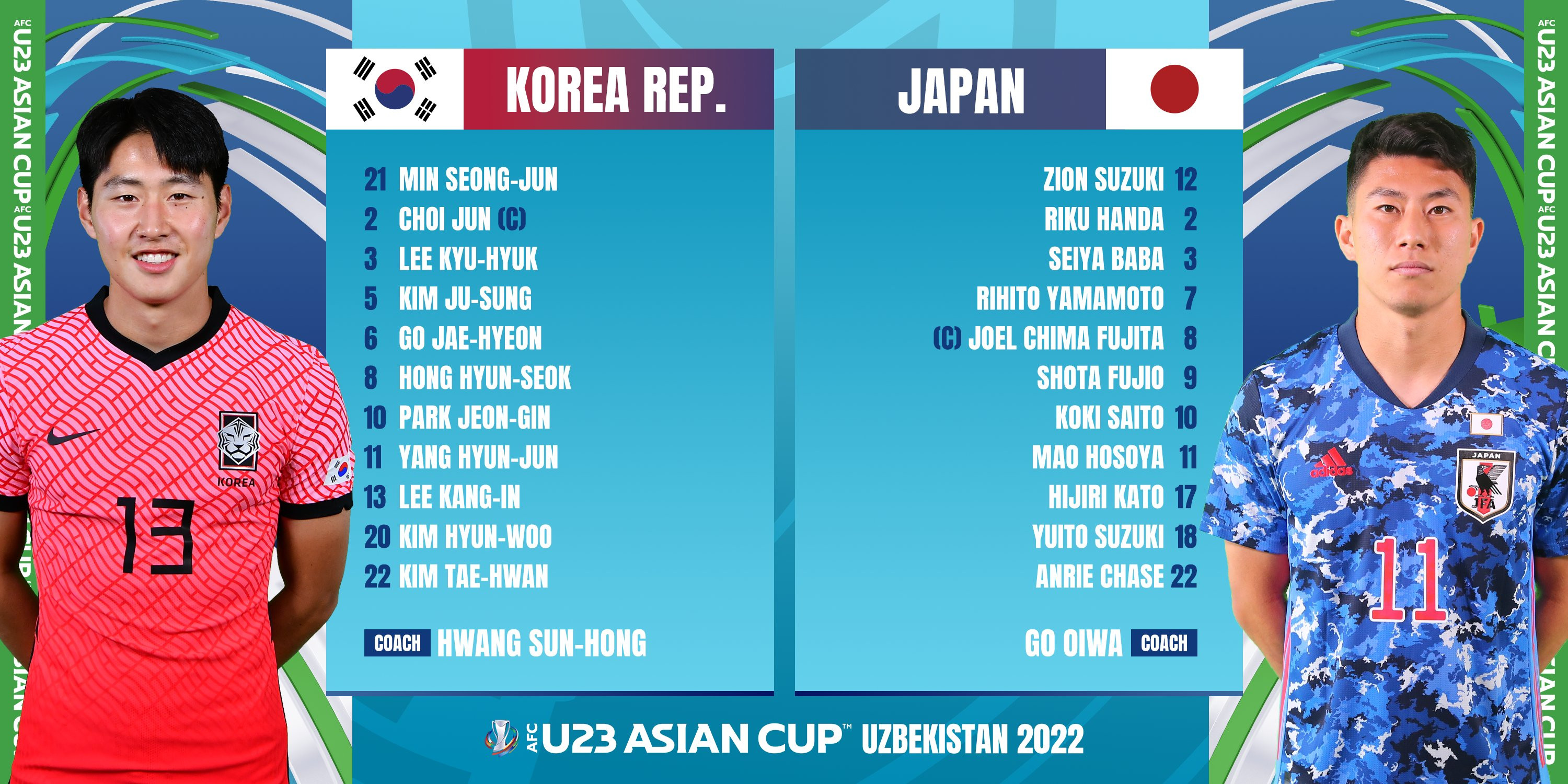 U23 Hàn Quốc: Seong Jun, Kyu Hyuk, Hyun Seok, Jae Hyeon, Ju Sung, Choi Jun, Hyun Jun, Lee Kang In, Jeon Gin, Hyun Woo, Tae Hwan.