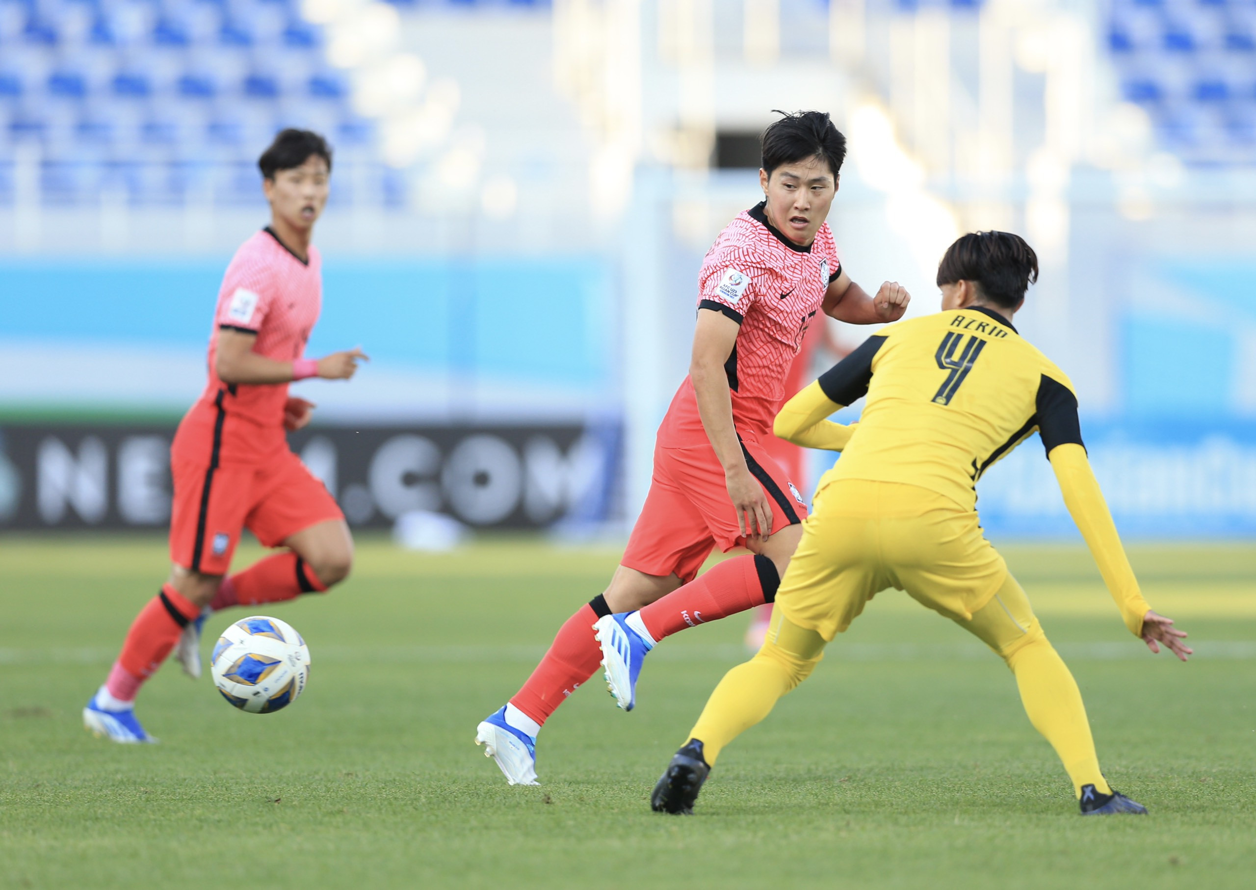 U23 Hàn Quốc chủ động giảm nhịp độ nhưng những đợt tấn công của họ vẫn luôn tiềm ẩn sự nguy hiểm.