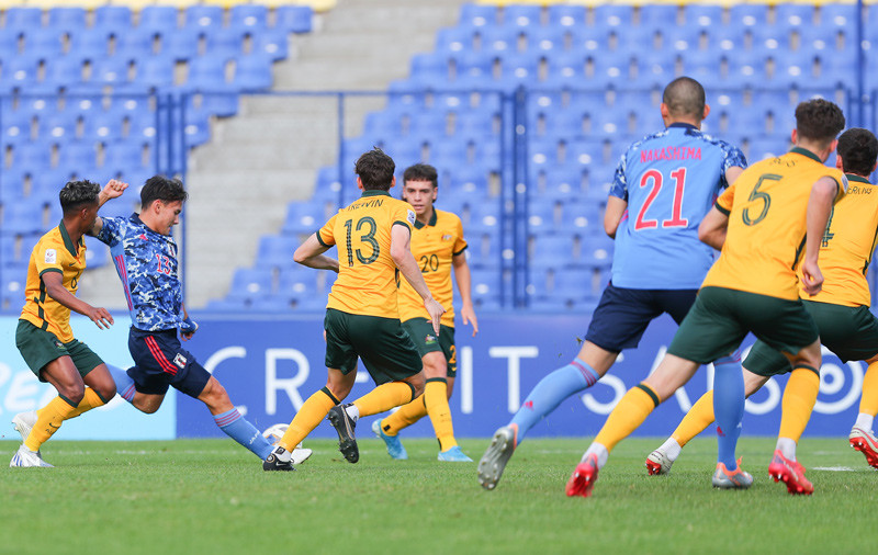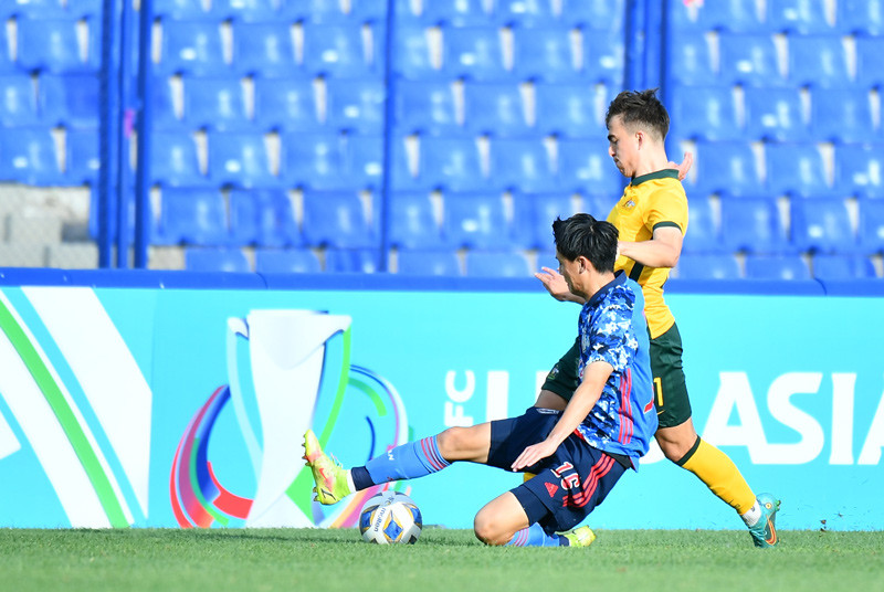 U23 Australia tấn công chủ yếu ở biên nên dễ dàng bị các cầu thủ U23 Nhật Bản bẻ gãy.