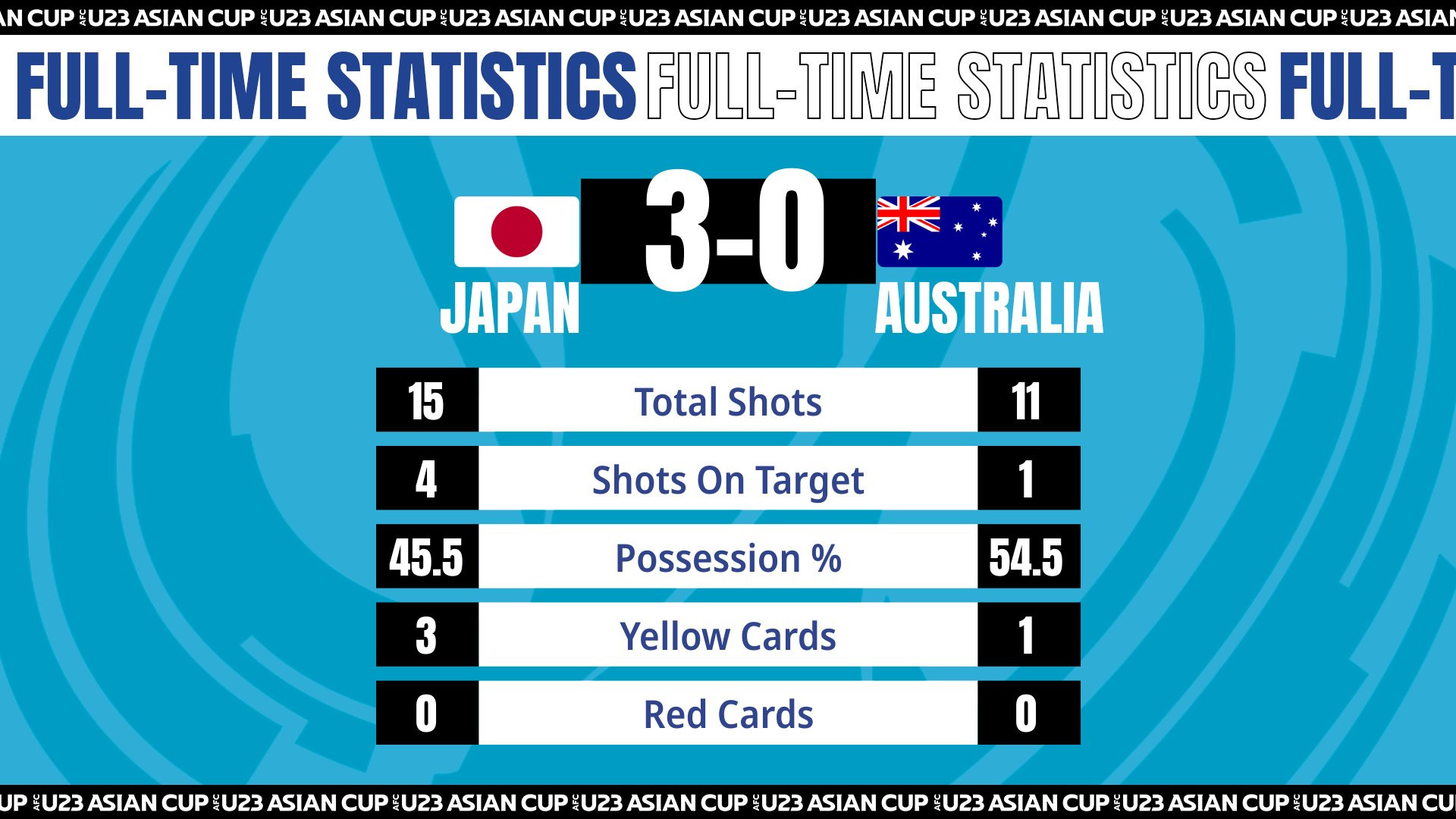 Bàn thắng (3-0, Fujio): Matsuki xâm nhập vòng cấm rồi trả ngược dọn cỗ cho tiền vệ vừa vào sân thay người Fujio đá nối căng tung lưới U23 Australia.