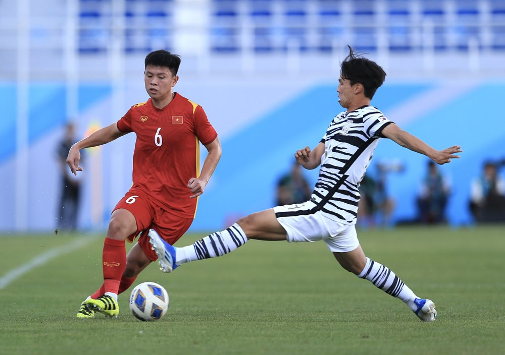 Tuấn Tài vừa lao về chặn đứng đường chuyền ngang của cầu thủ U23 Hàn Quốc từ cánh phải vào. Trước đó, các hậu vệ áo đỏ cũng chơi lăn xả cản phá cú đá trong vòng cấm của đối phương.