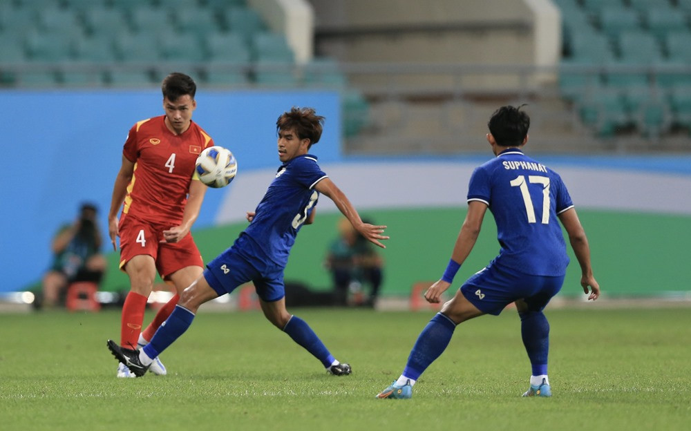 Lối chơi pressing tầm cao của các cầu thủ U23 Việt Nam tiếp tục gây ra rất nhiều khó khăn cho U23 Thái Lan.