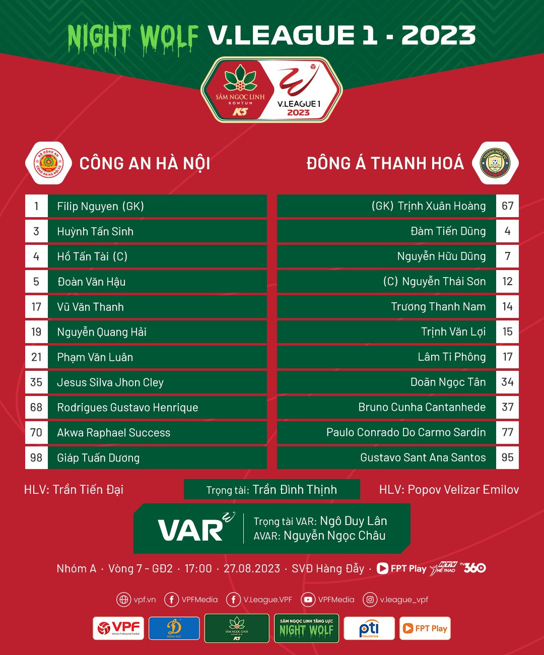 Đội hình xuất phát trận đấu trên sân Hàng Đẫy giữa Công An Hà Nội và Đông Á Thanh Hoá