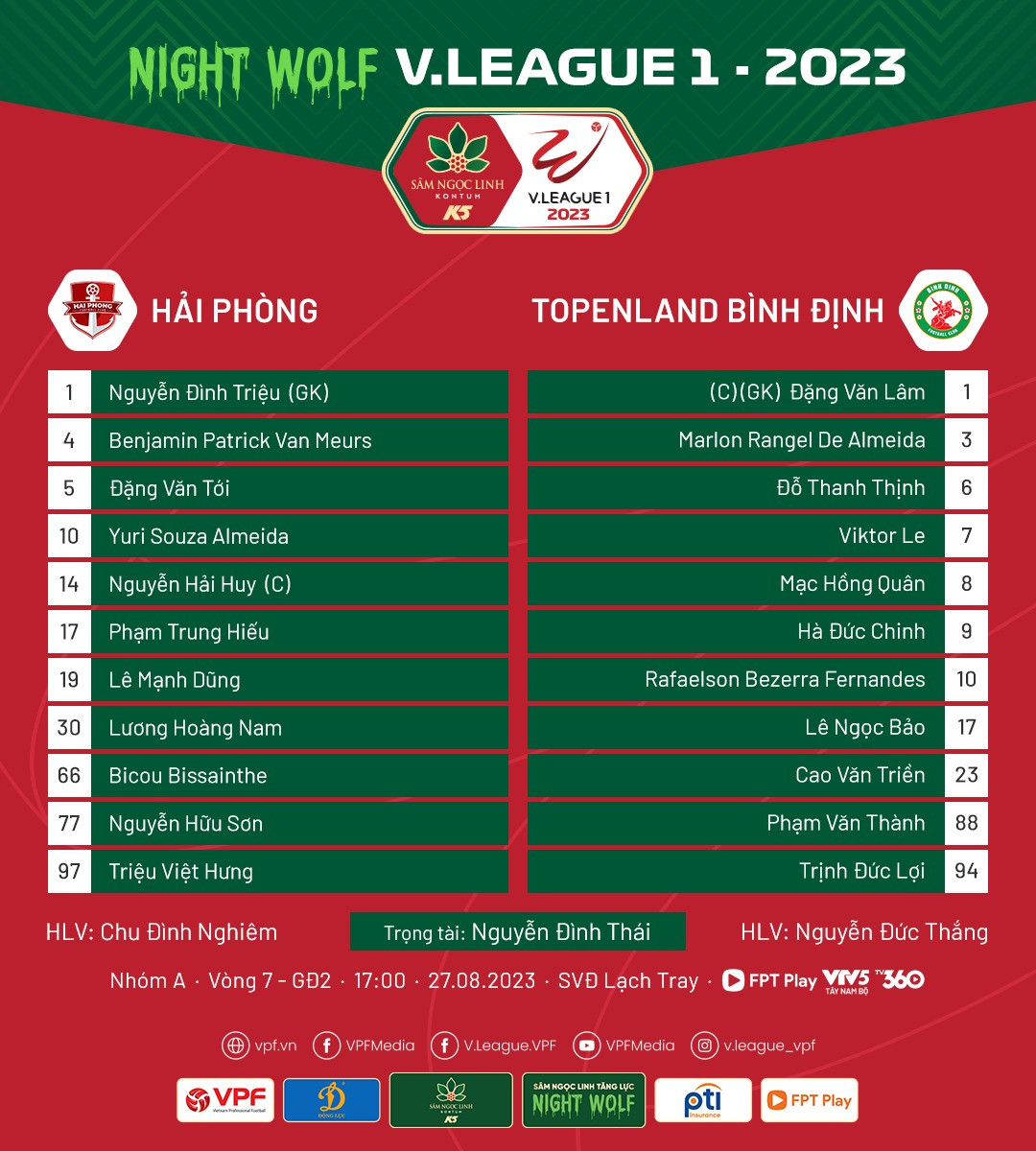 Đội hình xuất trận đấu trên sân Lạch Tray giữa Hải Phòng và TopenLand Bình Định
