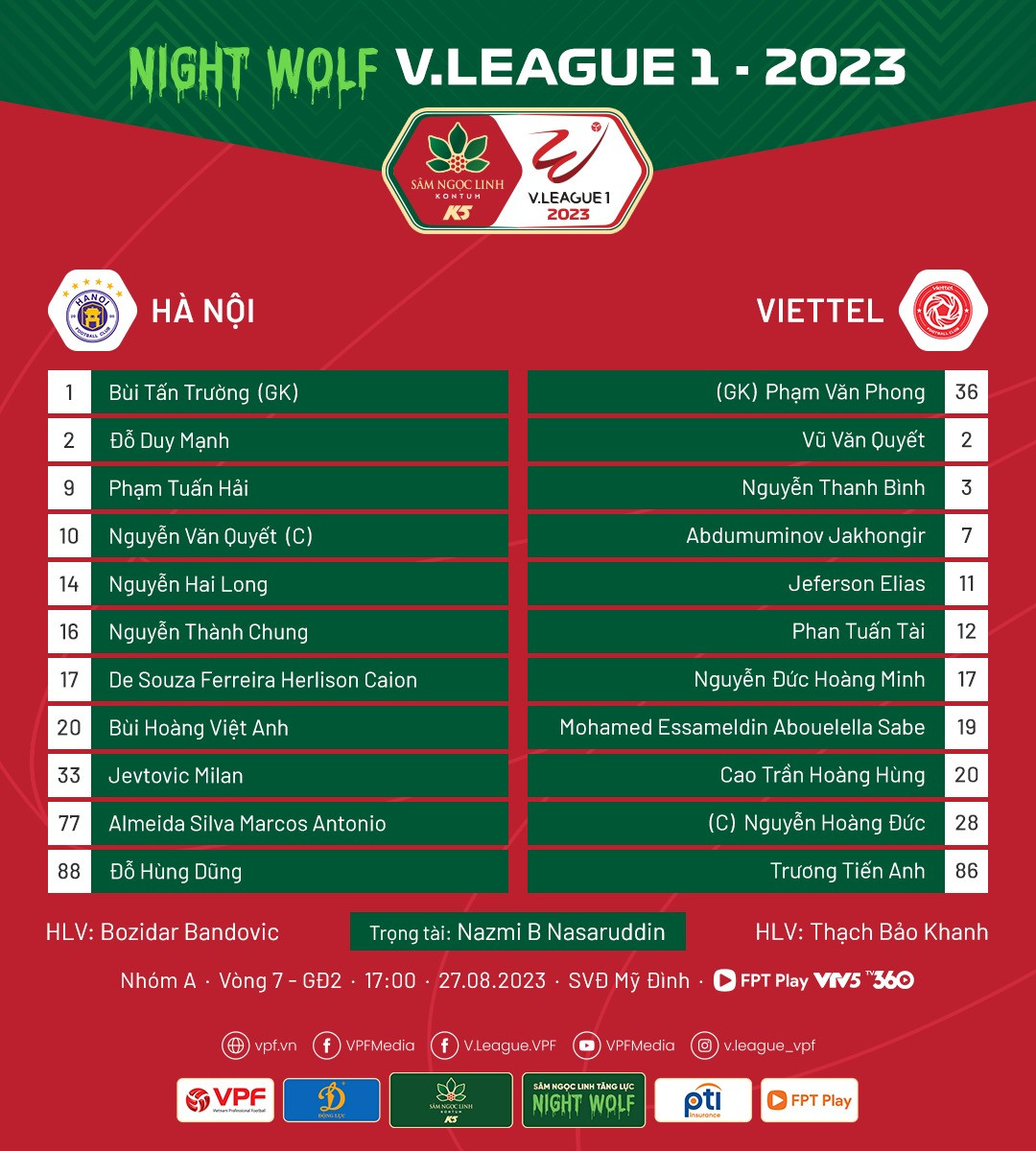 Đội hình xuất phát trận derby Thủ đô trên sân Mỹ Đình giữa Hà Nội và Viettel