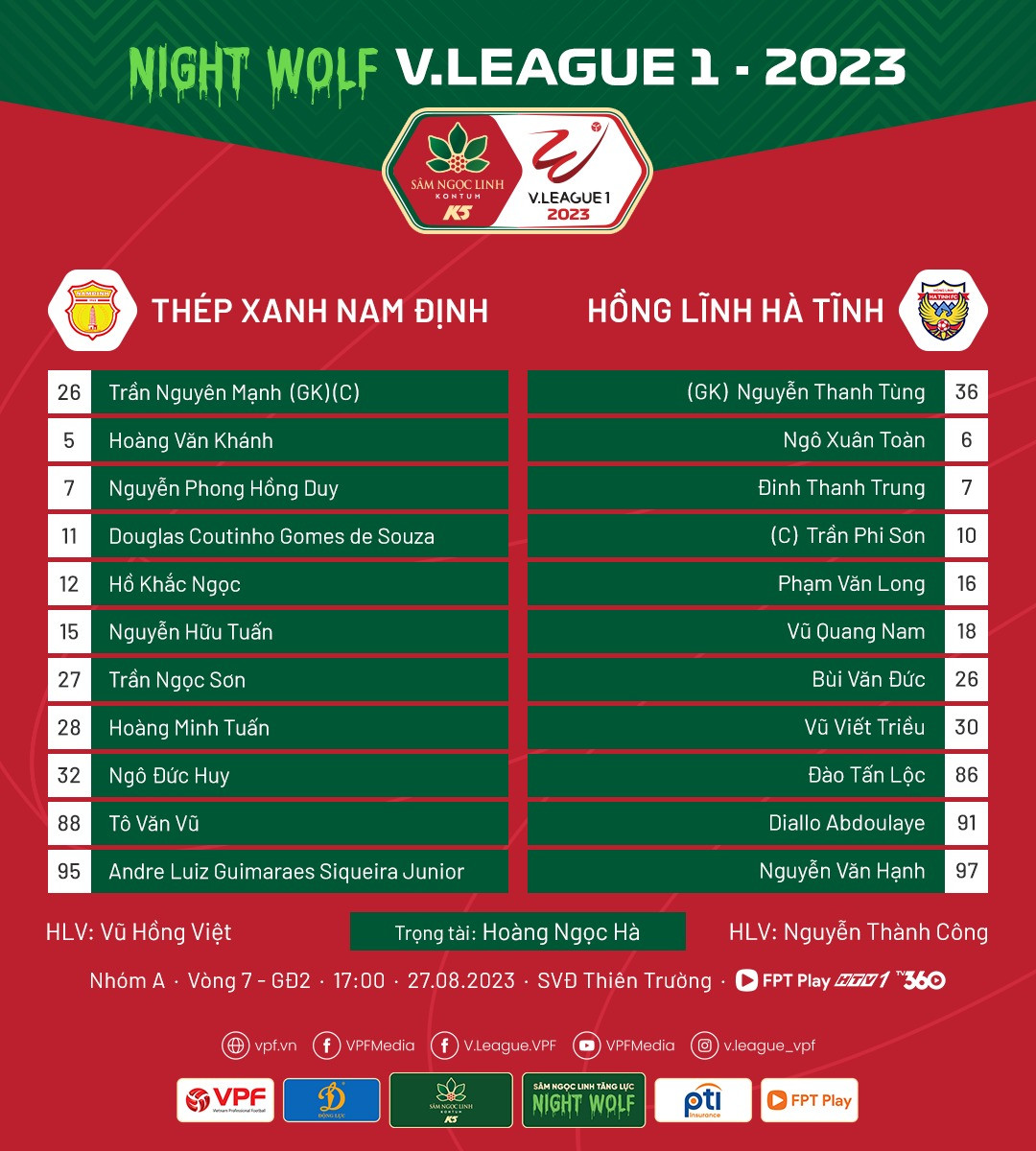 Đội hình xuất phát trận Nam Định vs Hà Tĩnh