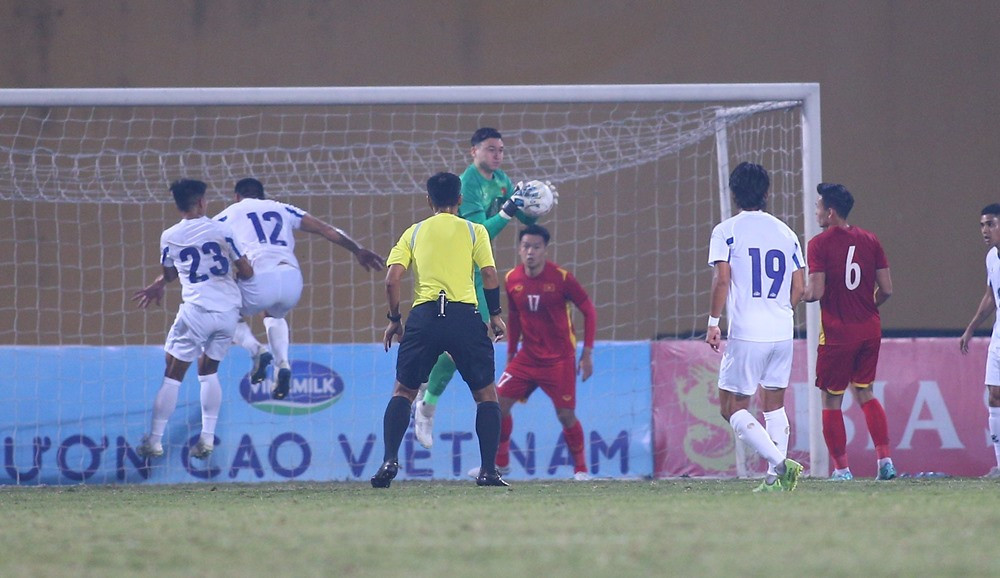 Tuyển Việt Nam đáp trả mạnh mẽ, tiếc rằng cú sút của Việt Anh lại đưa bóng đi chệch cột dọc Philippines trong gang tấc.